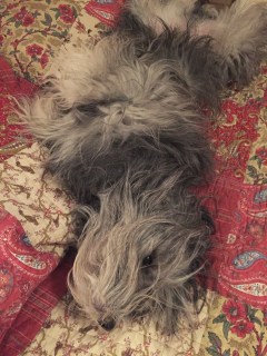 So yesterday morning began like most. We all got up after tormenting our human to get out of bed. It is the weekend – and she was begging for an extra 15 minutes of sleep (which we DID allow) – but then the continual jumping on and off the bed by all three of us boys finally forced her to get up. Works every time.