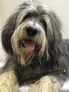 The comb is sturdy – we have been using it for months – and no broken teeth so far! The teeth are not sharp – so they don’t scratch our skin. The handle is easy on my human’s wrist. And BEST of all – it gets out tangles – very easily! The teeth are staggered – so they go through messy hair. I would even use this tool on my human. I give this product….FIVE PAWS!!