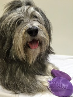 Last year, Paxton had a cut on his paw. He even had some surgery to see if there was anything stuck in his paw. There wasn’t. But after the surgery, his paw had to be bandaged – and it needed to stay dry. My human was sooooooooo happy she had those PAWZ.