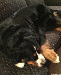 My human has had Bernese Mountain Dogs for many years. And she LOVES those big goofy tri-colored monsters. She got her first Bernese before people knew what a Bernese was. People used to ask her “what is THAT thing – a cross between a Saint Bernard and something else?” Now almost everybody knows what a Bernese is…
