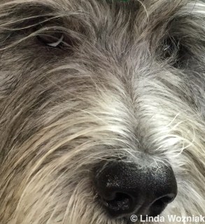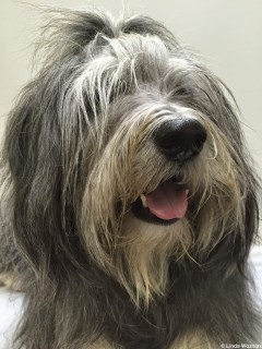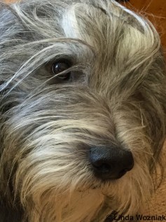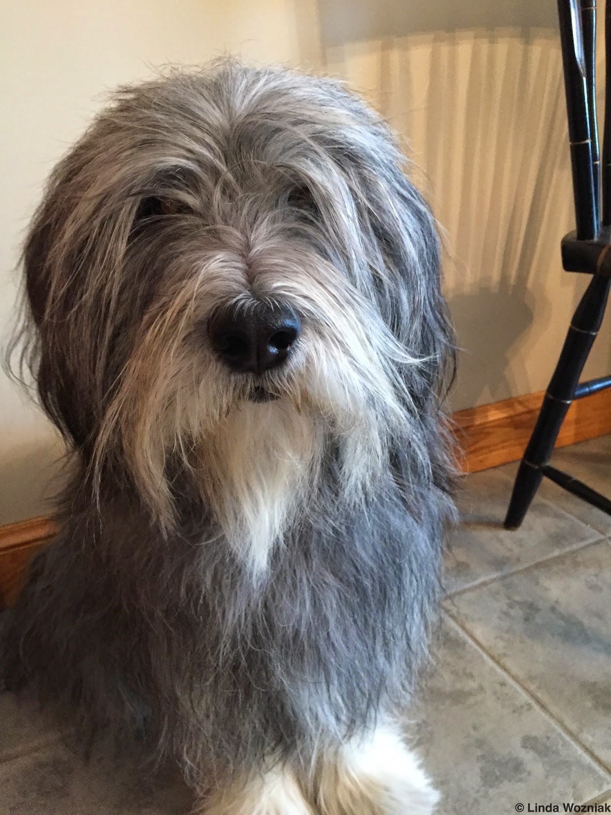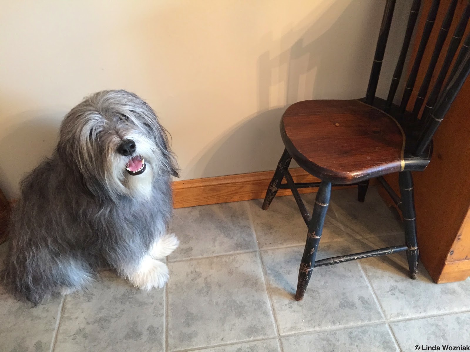 Step 2: Comb your willing dog’s hair, so that your profile photo will show his or her features. Have your willing dog sit – for the profile shot. To do this, my human placed enticing treats on a chair – which were at eye level for me. She asked me to wait – and look at the treats. When she got a good profile photo with her smart phone, she told me I could have the treats! She took MULTIPLE photos.