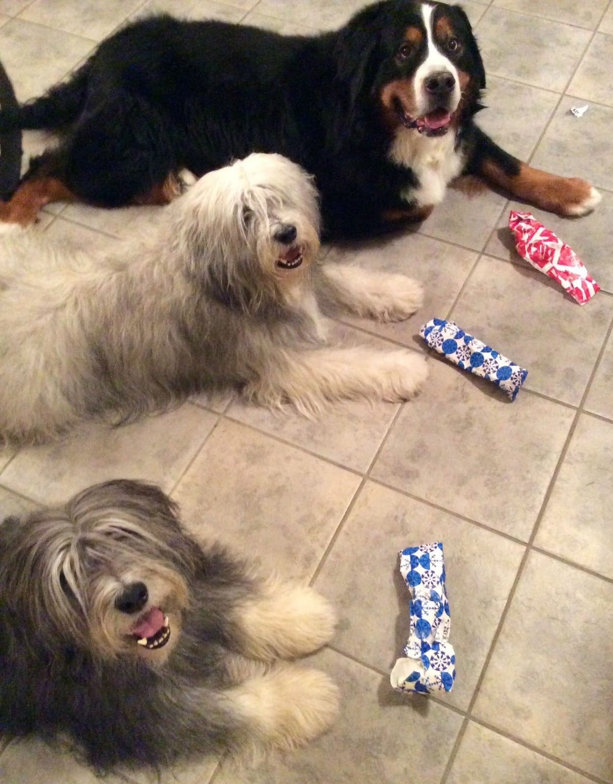 Well, I had better rest up for the New Year’s Eve festivities – my human and her mother watching people on TV stand outdoors in the cold, waiting for a ball to drop on a building. Then they sing. And cry. Humans. But knowing my human and her mother, they’ll both be sitting on the sofa sound asleep before the ball drops. Guaranteed. And I think we dogs may be joining them….