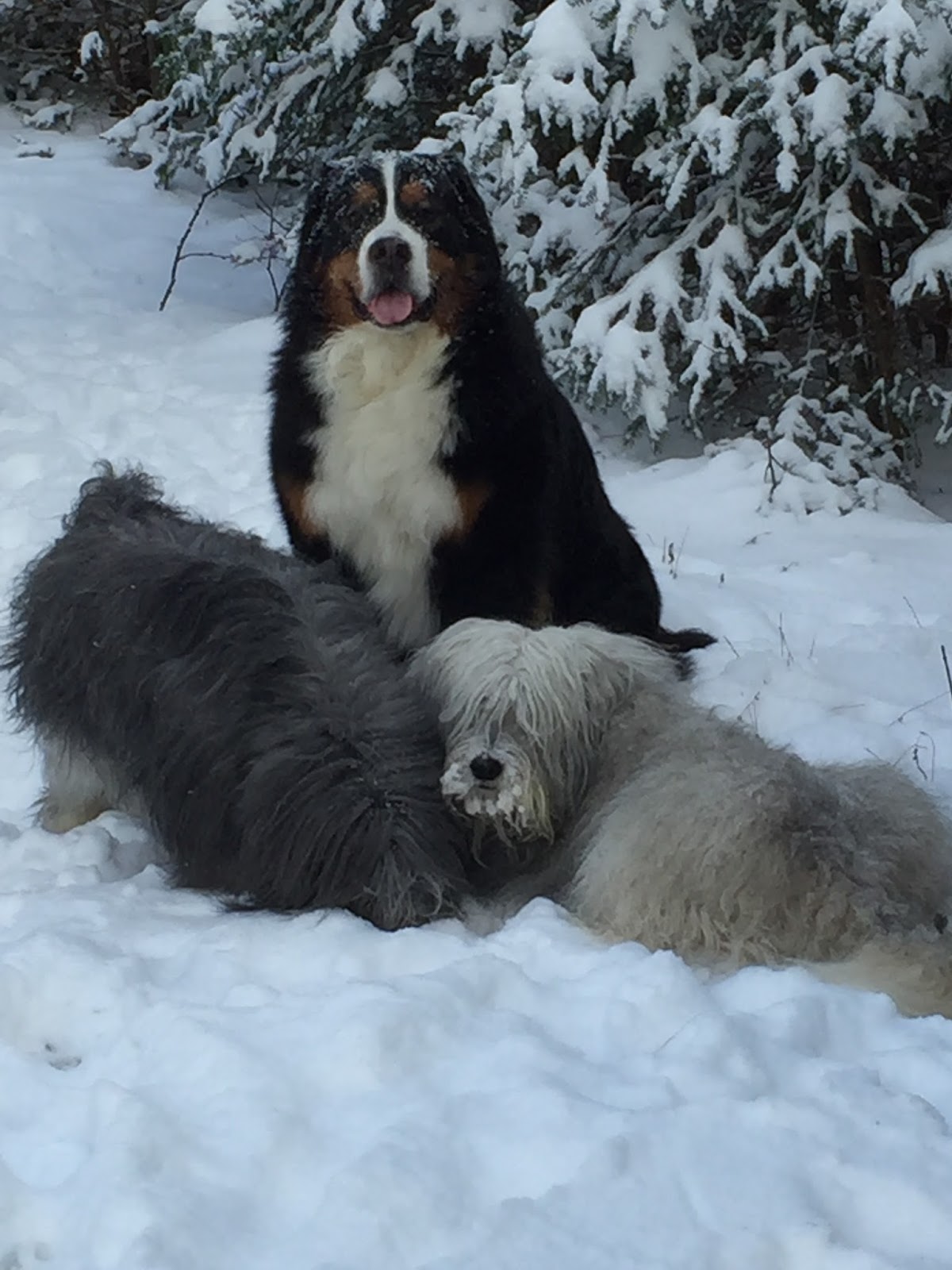 The year began with the winter from…Siberia. And the dreaded luge run driveway. We managed to stay sane – or should I say our human managed to stay sane through one of THE worst winters on record. Of course we dogs don’t know the difference – and we thought that climbing the mountains of snow piled along the sides of our driveway was GREAT fun. Heck, we even posed with the dreaded Easter Bunny ears in the SNOW.
