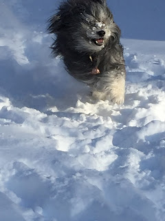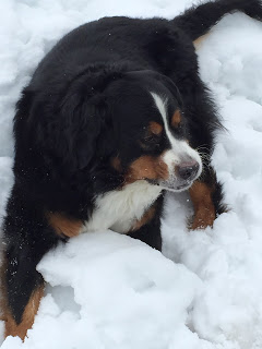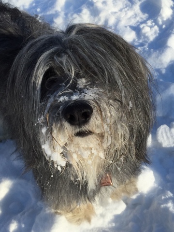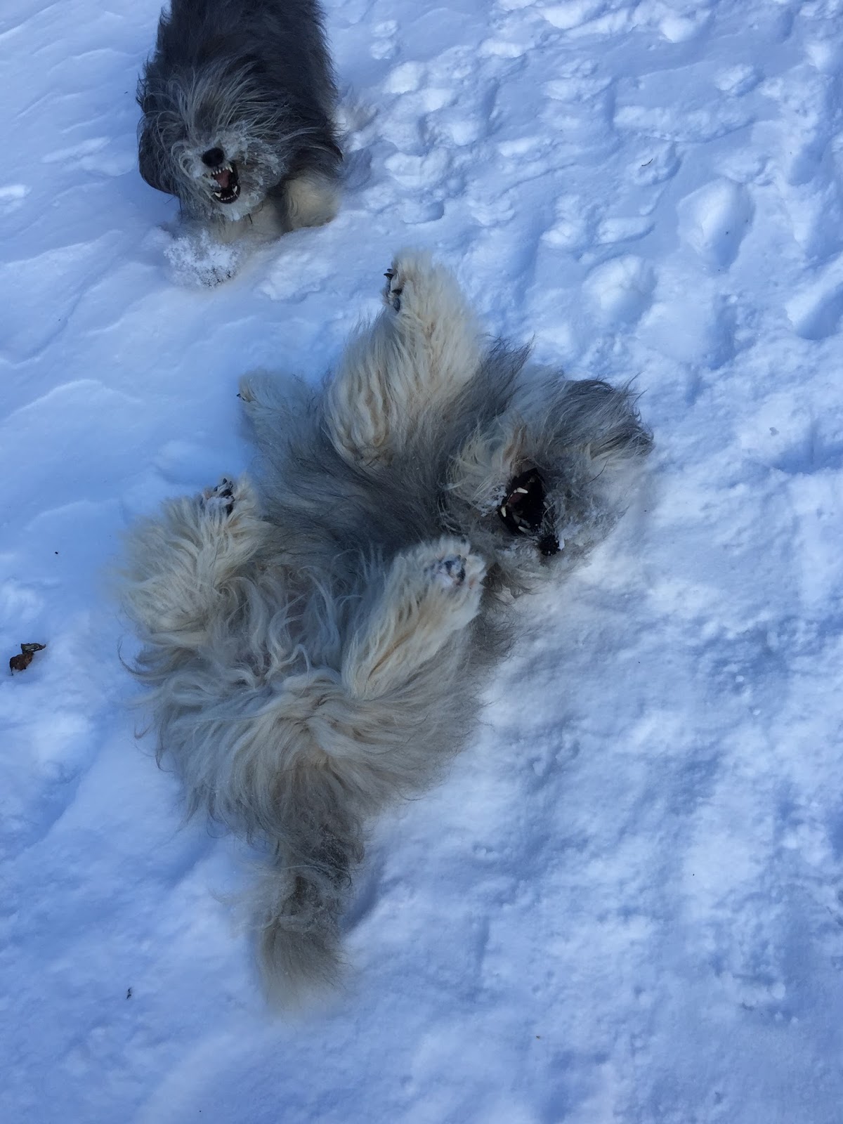 We also have the snow roll competition. Points are calculated based on how long your four legs are in the air. Frodo would be a gold medal contender in this event.