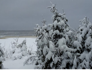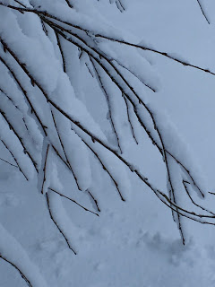 The snow really WAS pretty yesterday.  My human went out without us to take some photos.  In the still, peaceful, quiet of the morning she took these shots.  With HOWLING dogs standing in the window watching her.   Here are a few shots: