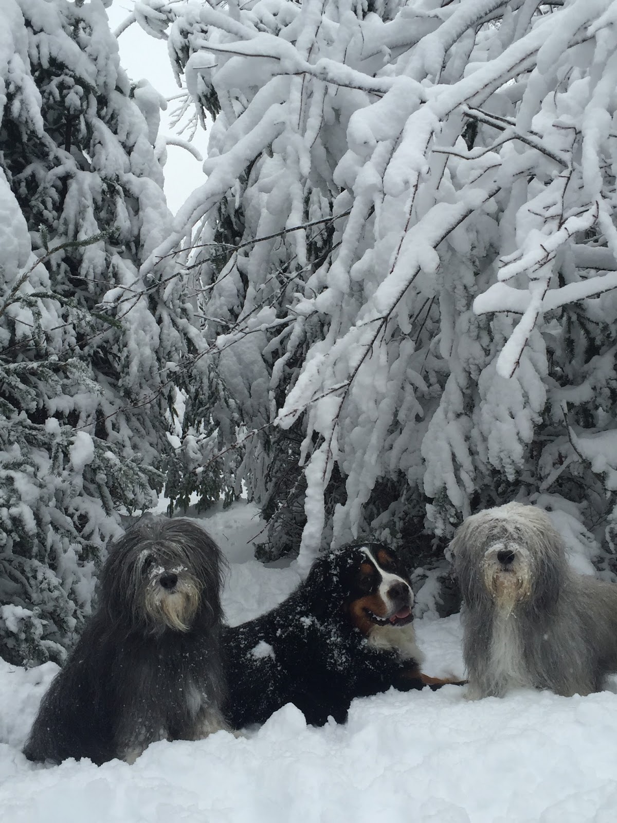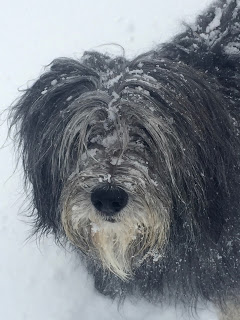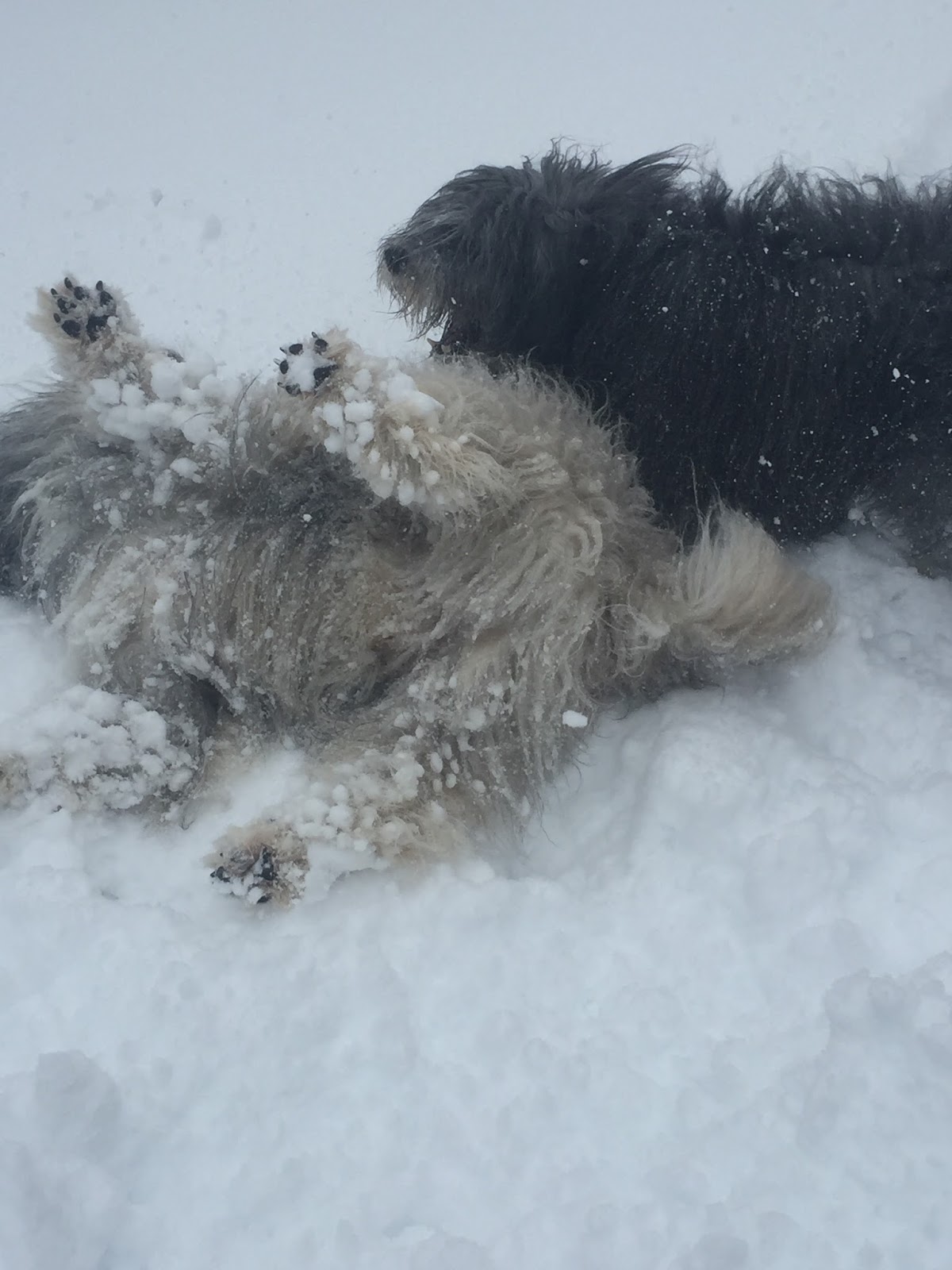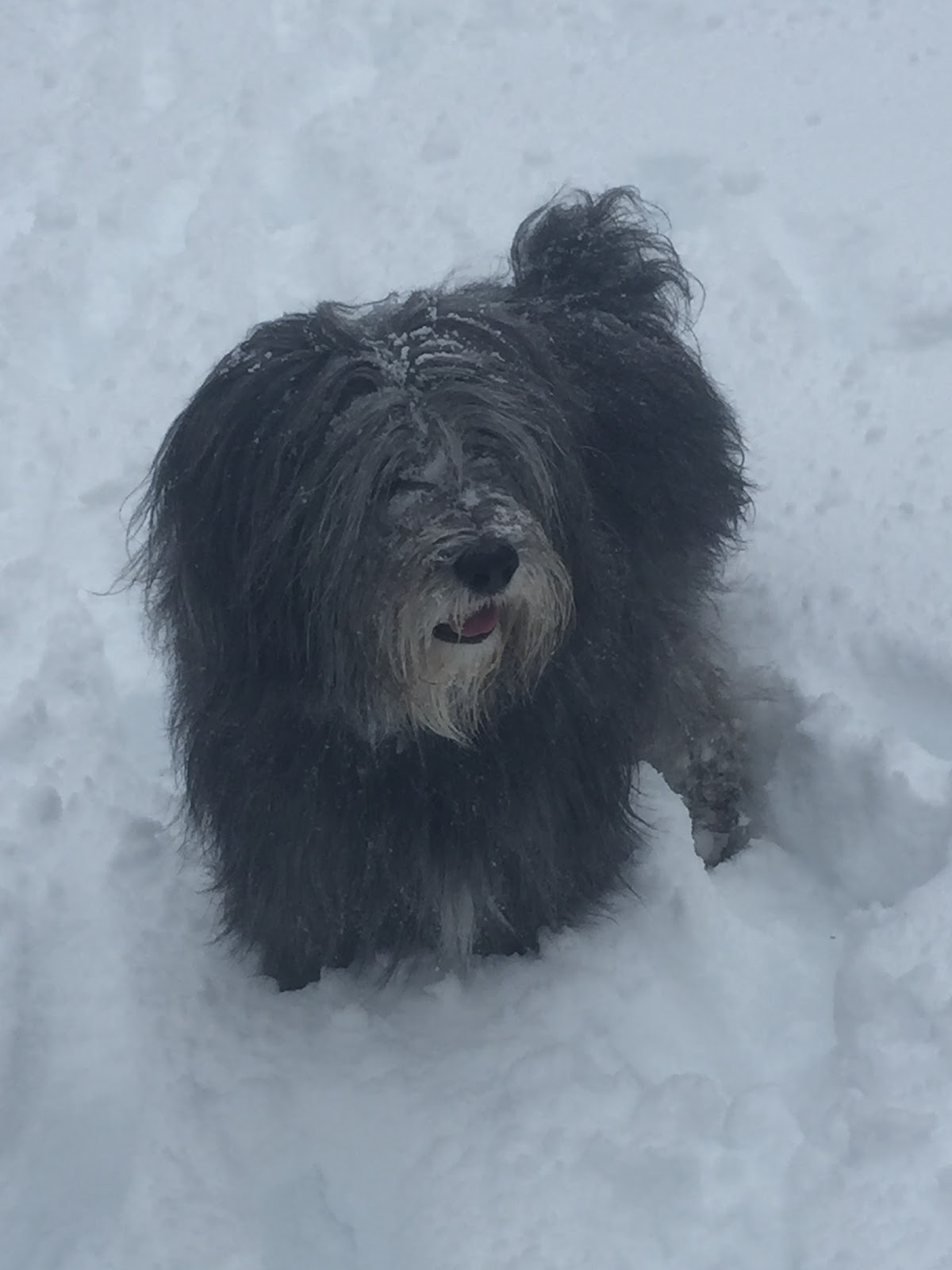 Oh the joys of winter.  That’s what my human kept repeating yesterday.  We heard it over and over and over again…