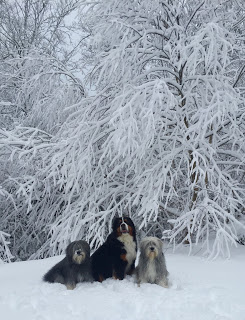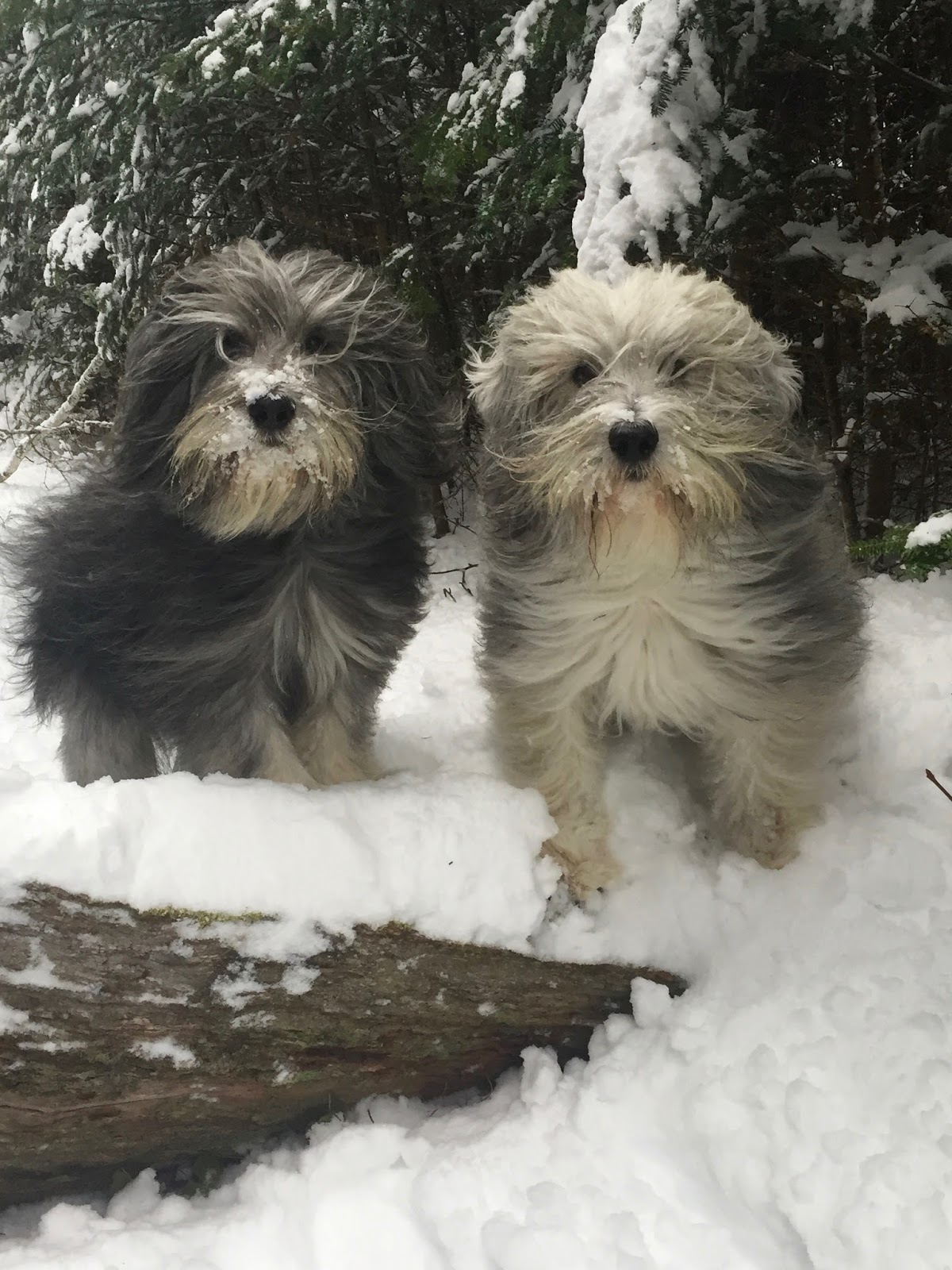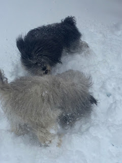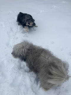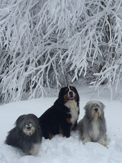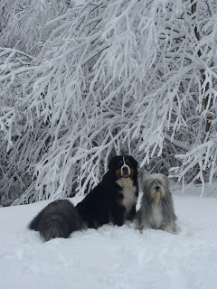 By the time we got back to the house, Frodo was walking as if he had just been riding a horse.  He probably weighed another 20 lbs.  I was bad – but not QUITE as bad at him.  If someone knows a good method for getting snowballs off – LET my human know.  She put both of us on the grooming table and attempted to blow them off with the dryer.  And she manually tried to break them up.  It took like 6 hours.  OK.  Maybe not THAT long – but it felt like it.  By the time we were done, my human was ready to collapse.  But we were ready to go back out again.  She just looked at us and said “NOT a chance.”  So that was that.