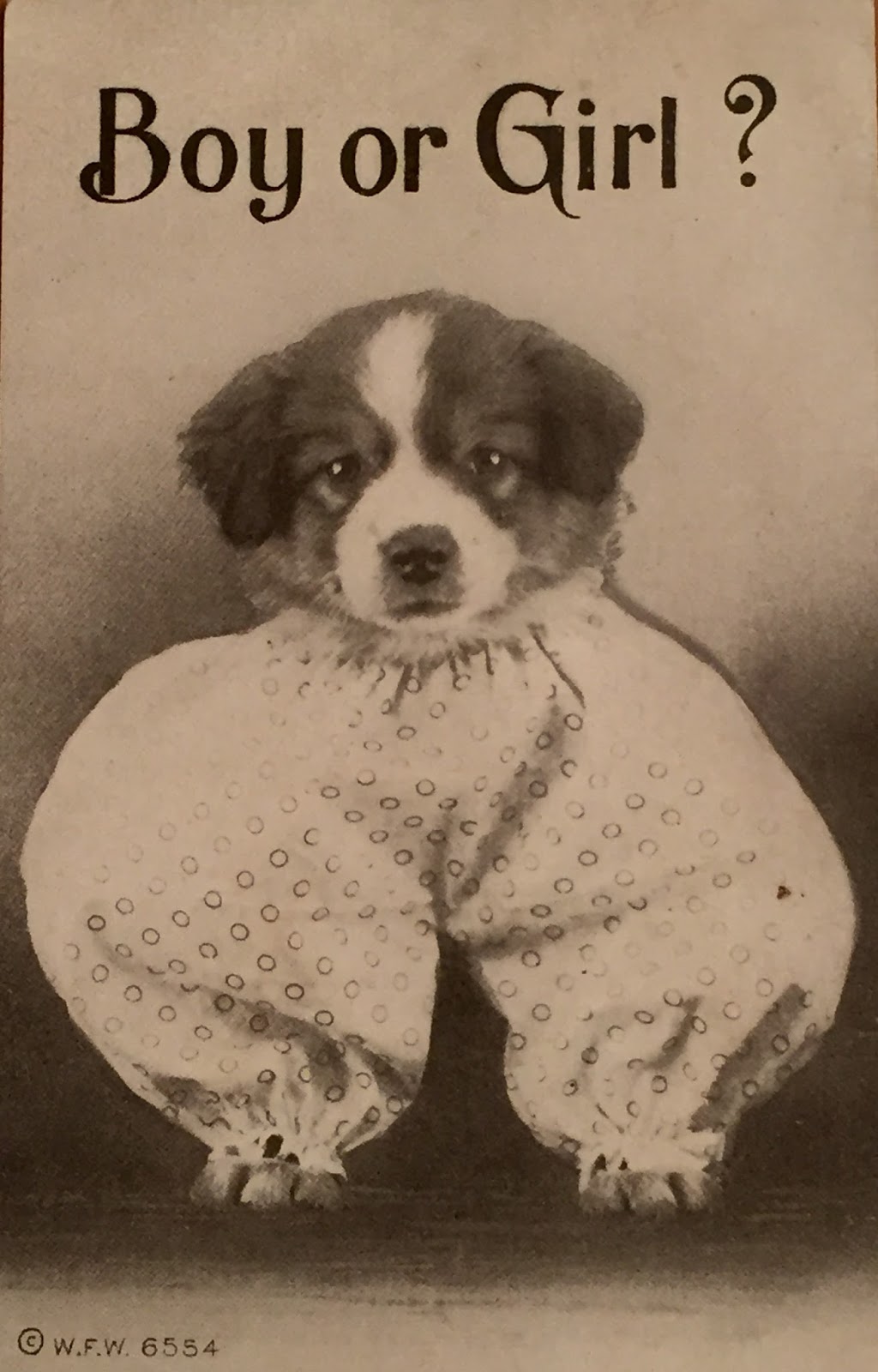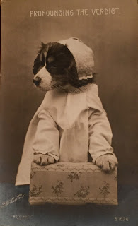 So humans have been crazy about dressing up their pets for a long time.  My human took a look through her collection of vintage dog postcards and found a few more examples.