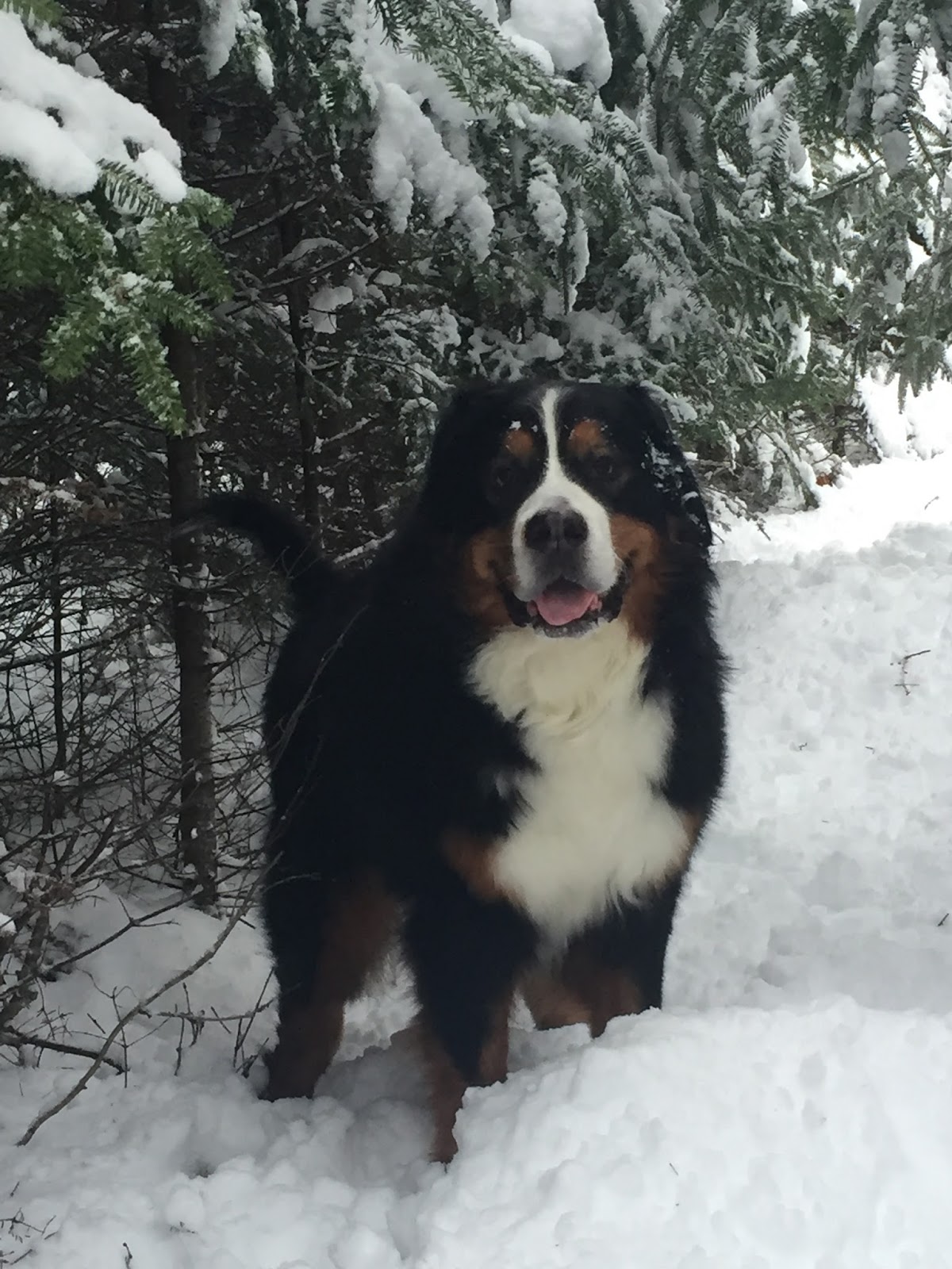 Of COURSE it would be Bernese Mountain Dog.  Paxton just watches squirrels.  While Frodo and I go ABSOLUTELY MAD if we see one.  Did you know that some squirrels can jump 20 feet?  And some squirrels FLY?  Well they glide.  Talk about how to make a PON’s head explode – let them see a flying squirrel!