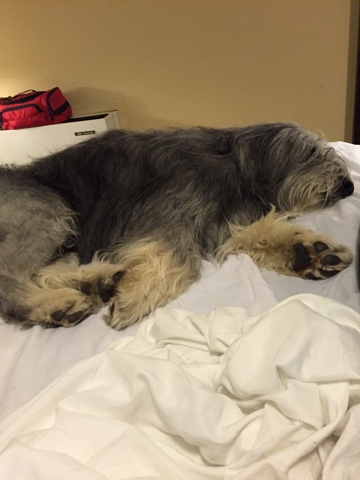 Good thing she brought those sheets though, as Velcro dog and I made ourselves QUITE at home.