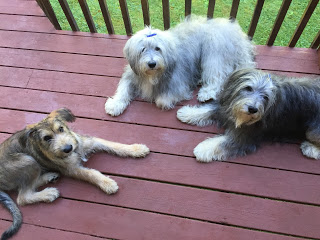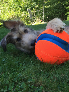 “That’s a cool bone. I must chew on it. Chew. Chew. Chew. Wait. The big fuzzy white one is walking by. Must chew his tail. Must bite his ears. Must bark. Must chew. Must bark. Must chew. Wait. I never noticed THAT bone before. Must chew. Wait. I’m thirsty. Must drink. Must drink. Stop. Is there something in the water? Must stare. Must stare. Muuuuust put foot in the water. Must splash. Drat. The human stopped me. Must chew bone she gave me. Wait. I wonder how the outside of my plastic kennel tastes. Must chew. Must chew. Wait. I never noticed THAT bone before. Must chew. Wait. These table legs are made of wood. Must chew. Must take the bone the human has given me. Wait. Those socks the human is wearing sure look tasty. Must chew. Wait. Why are the other two canines running to the kitchen. Must line up. But don’t know why. What’s this yellow stuff called banana? Must chew. Must spit. Must chew. Must spit. Must roll. Must chew before other canine steals this thing. Hmmm. Feeling tired. Must lie down. OK. Enough of that. Must explore. Hmm…the gate to the DFZ has been secured. Must try to figure out how to get in. Wait. I’m thirsty. Must drink. I need to pee. Must stand and stare at door. Must sit while leash is being put on. Wait. I don’t think I really need to pee. Wait – what’s that on the sidewalk? A rock. Must chew. Must trade for something my human has pulled from her pocket. Must walk on wet lawn. Must pull to go BACK in the house. Must find the big fuzzy white one. Must bark. Must pull clumps of hair. Must chew hair. Wait. I never noticed THAT bone before. Wait. This carpet is so chewable. Wait. Here she comes with that Bitter Apple stuff. Must grab human pant leg as she turns to walk away. Wait. Must look at that other grey fuzzy one. Must play bow and bark. Wait. I never noticed THAT bone before. Wait. Must nudge human while she if attempting to eat. Must look adorable so she will pet me. Must chew her sleeve while she pets me. Must continue to look adorable while doing so.”