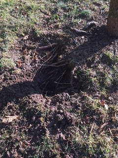 So we can soon start planting those spring flowers. Sure we can. And Elroy will definitely be able to help. Digger is his middle name. Here is an example of 2.7 minutes worth of work on the front lawn.