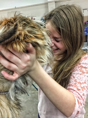 Today is Elroy’s turn for Meet the Breed. He’ll love that. He likes to work the crowd – and he LOVES to give kisses. Here he is giving kisses to a little girl who fell in love with him.