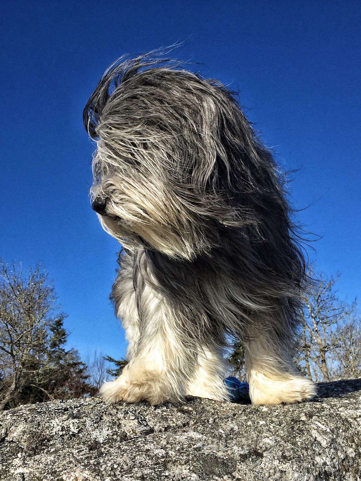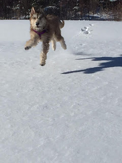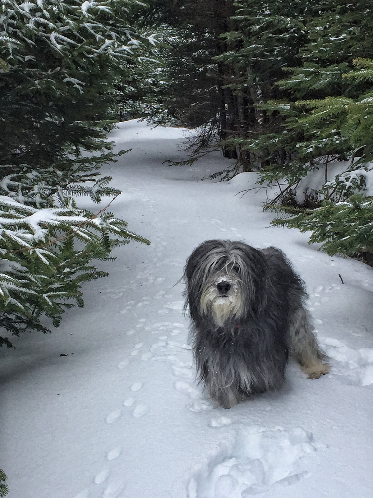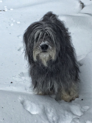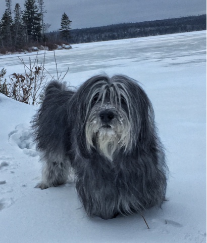 Well we had a blizzard yesterday. A real honest to goodness blizzard. Snow was coming down ALL day and the winds were blowing like crazy. Nova Scotia was essentially closed. Everything – the airport, schools, banks, offices, stores – everything was closed. But of course, we dogs didn’t care. Well – at least Elroy didn’t. He thought that gale force winds were just terrific. And he repeatedly kept going to the door. I think he just liked watching my human dress up in all her snow gear. I didn’t mind the snow – but Frodo thought it was just a BIT too wet for his liking, so he had to be coaxed out. And today is day 2 of the blizzard. My human is home with us again. We’ll make sure she doesn’t get bored with all this time off…
