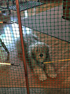 All the dogs looked SO nicely groomed – so you KNOW what happened once the judging was over. Grooming for the Three Musketeers. And then we had to play “pretend dog show.” Of course Frodo is excellent at that game – he puts his feet in a perfect stance, puts on his game face and never moves. I do it for 3.7 seconds and then I start doing other things. I sit. I jump. I move forward. And Elroy. He thinks the whole standing still thing is very overrated. You never know exactly WHERE his feet are going. But he does have the ears thing down. He stares and looks all inquisitive. The reason why is because he’s trying to figure out where his feet should go and why the heck has has to stand still. Chewing on the lead is MUCH more interesting!!!