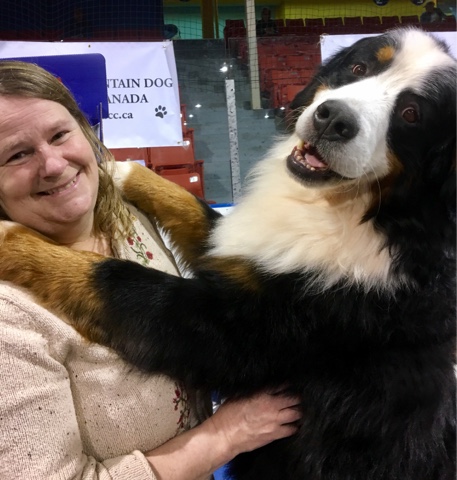 And here is none other than Auntie Glenda and Brick – who were there with the Bernese Mountain Dog Club of Canada booth. Brick was a great ambassador.