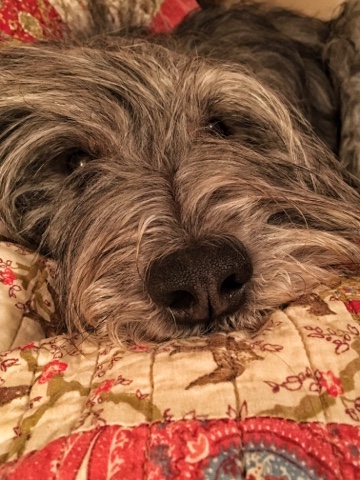 I must brag that on the way home, my behavior was again exemplary. I went in my crate, and never made a peep. That was in stark contrast to Einstein. He continued to pant and squeak like he did on the way down. And of course my human would worry that he needed to go out. So she would pull over, get him out, and watch him trot around with NO need to pee or poop. My human’s mother at one point was really wishing we had that recording of rain.