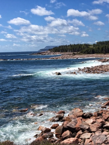 The we drove all around the Cabot Trail and stopped numerous times for pee breaks. And scenic photo shots. She didn’t attempt to get us in all the scenic shots – as some are taken in rather precarious locations – and she didn’t REALLY want to be dragged over a cliff.