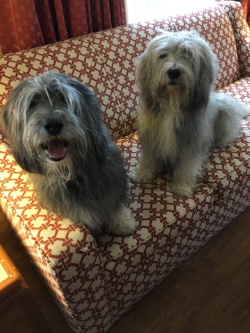 We arrived at our cabin at the Keltic Lodge – and as you can see, we made ourselves right at home. In this photo, my human’s sister had just told Einstein that the couch did not have his name on it.