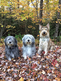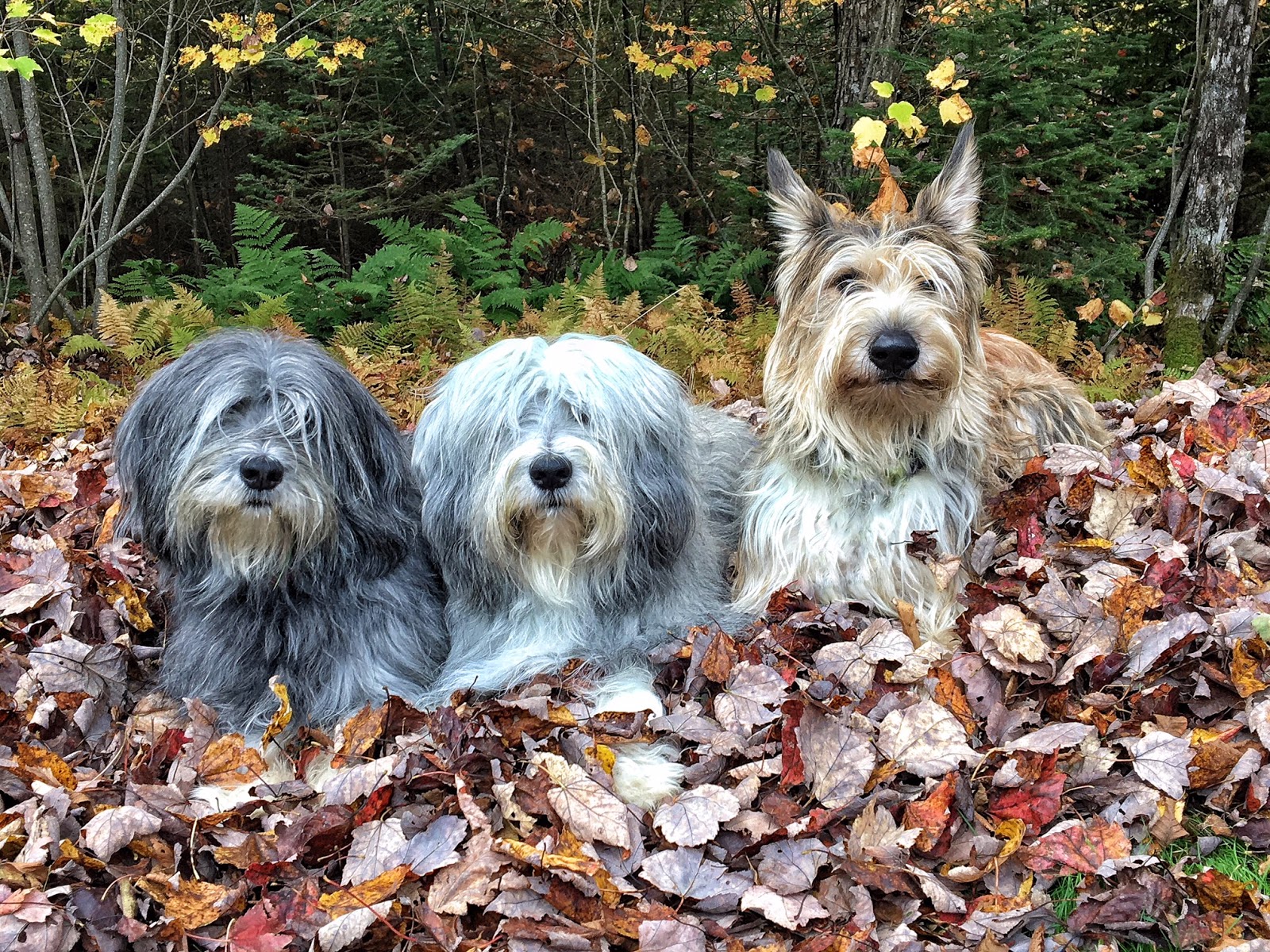 So she directed us to the leaf pile. Where Einstein and I immediately peed. She shouted “no – not THERE!!!!” Too late. She moved the peed leaves around and lined us up and told us to sit. And stay. Which she said probably 458 times. Now getting us to sit and stay is one thing. And we actually DID stay because we REALLY liked the treats. But the next challenge is to get EVERYONE looking at her. AND everyone smiling. It never fails. Two of us smile and one of us looks like you just took away our favorite bone. Or alternatively, NONE of us smiles. Like in these photos. Cute photos. But we DO look rather cranky.