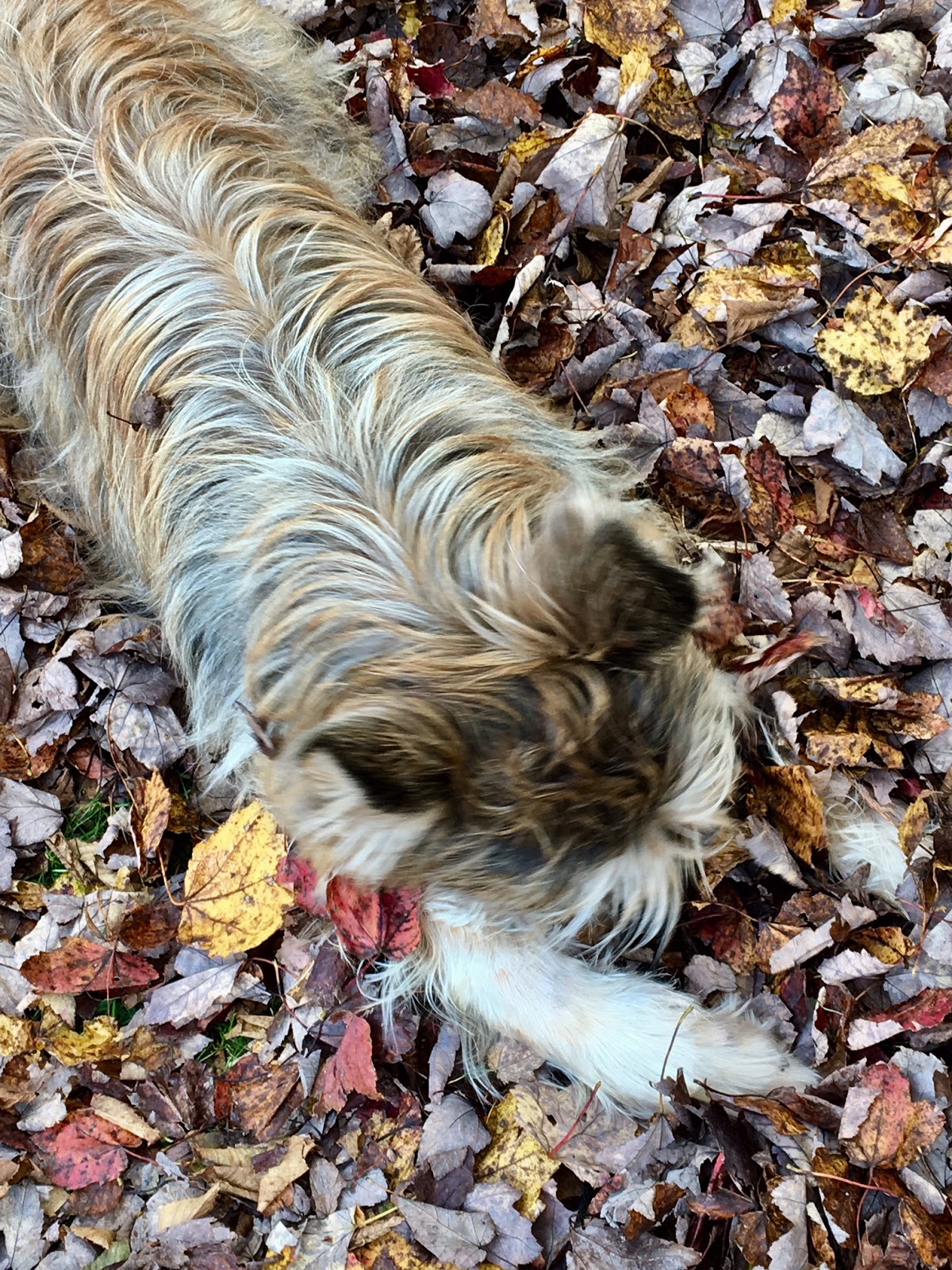 She would toss leaves in the air and he would LUNGE for them. Or he would bury his head in the leaves.