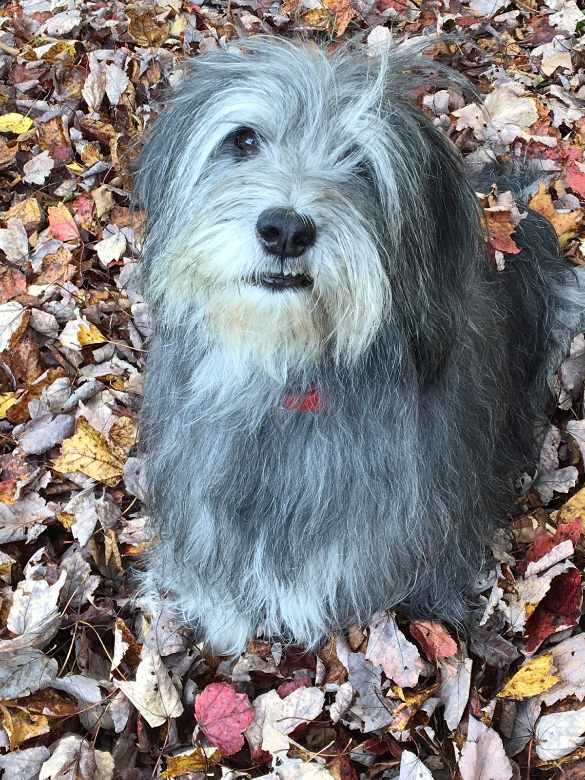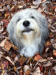 Then it was MY turn. I wasn’t big into lying down for the shot – but agreed to sit in the leaf pile. Unlike the pout face of Einstein, yours truly does the “funny lip” thing. My human kept telling me to stop with the lip thing – but I had NO idea what she was talking about. Well….actually I DID, but in order to get me to stop the lip thing, she would give me a treat.