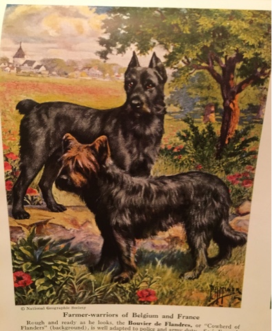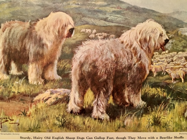 October 1. And on this day in 1888, the magazine, National Geographic was published for the first time. The magazine has published MANY articles about dogs. My human has an issue from December 1941, which had an article titled Working Dogs of the World. Here are a few paintings and photos from that issue: