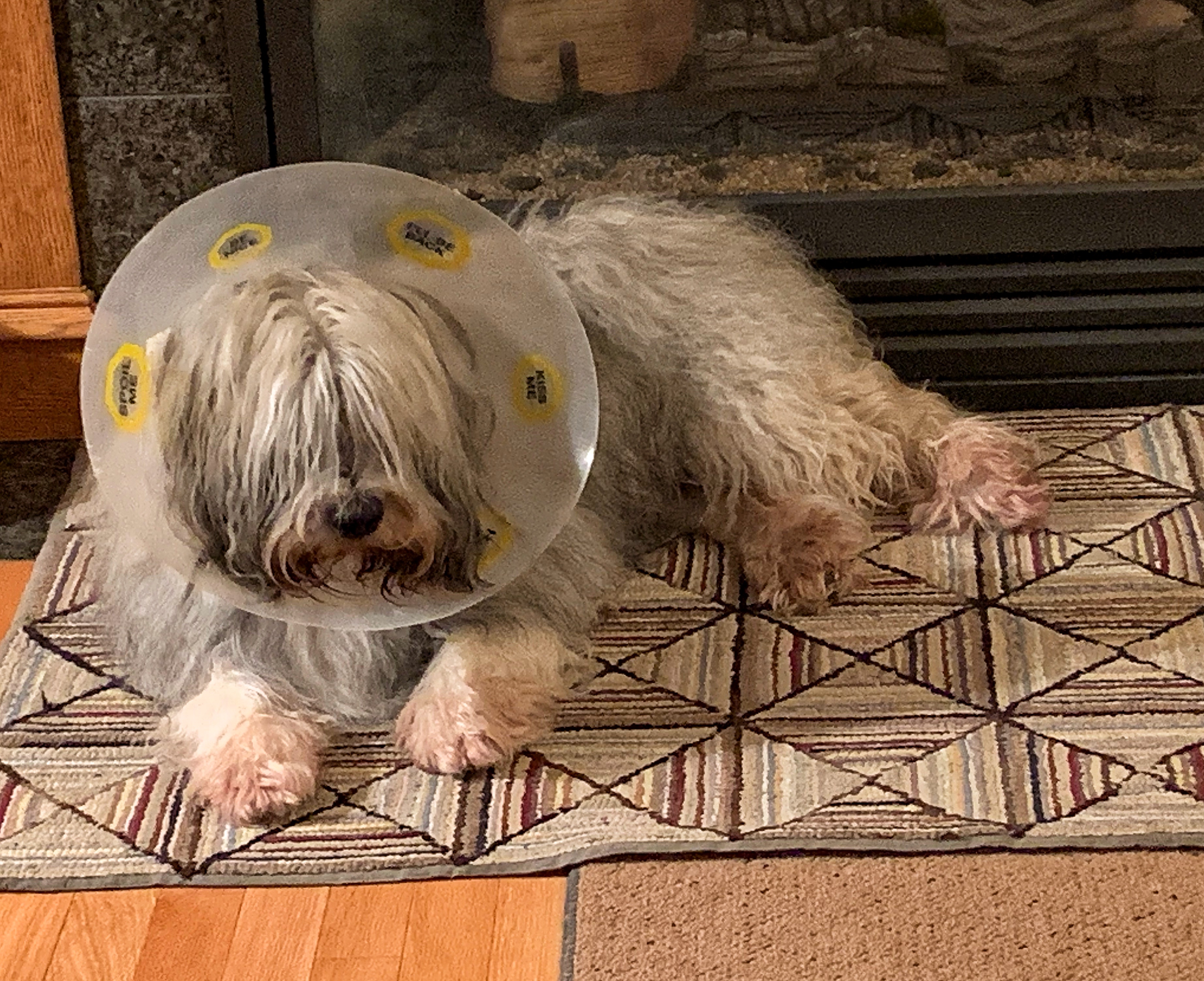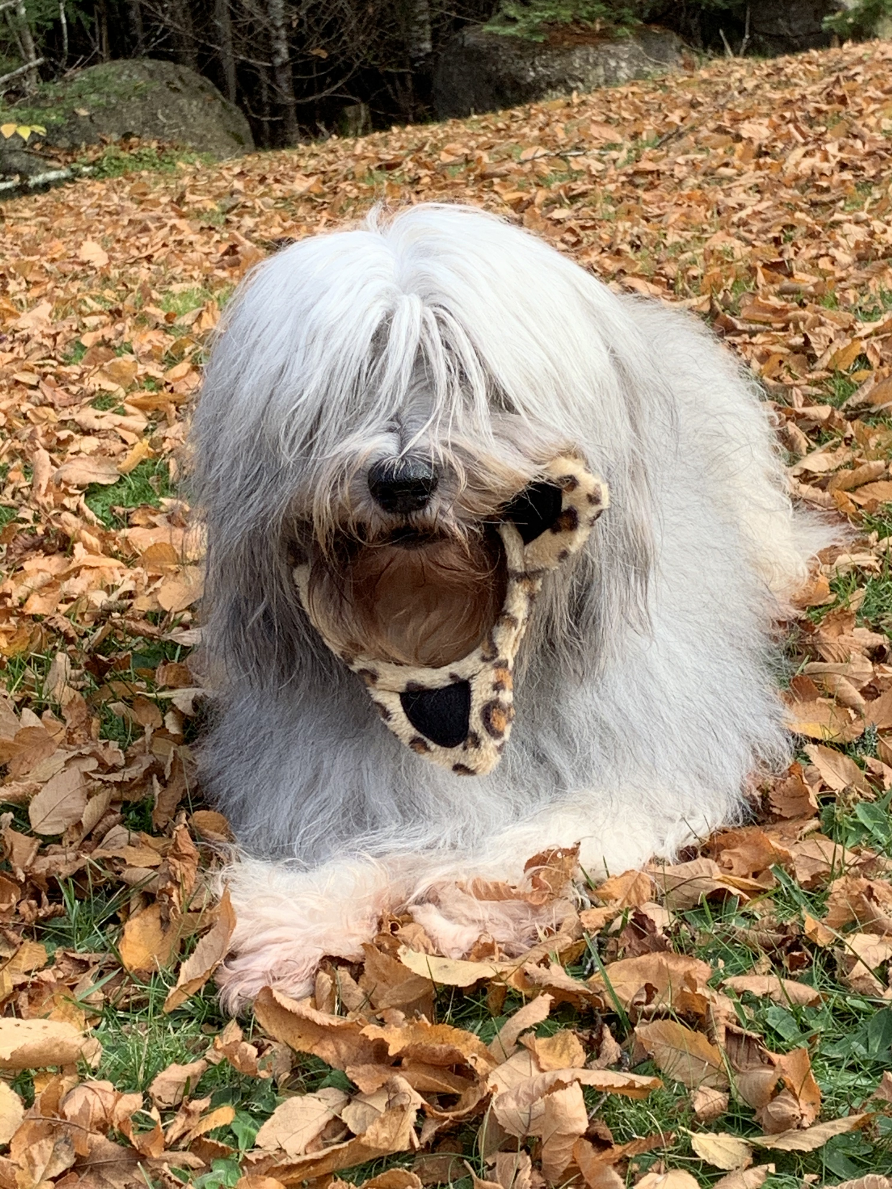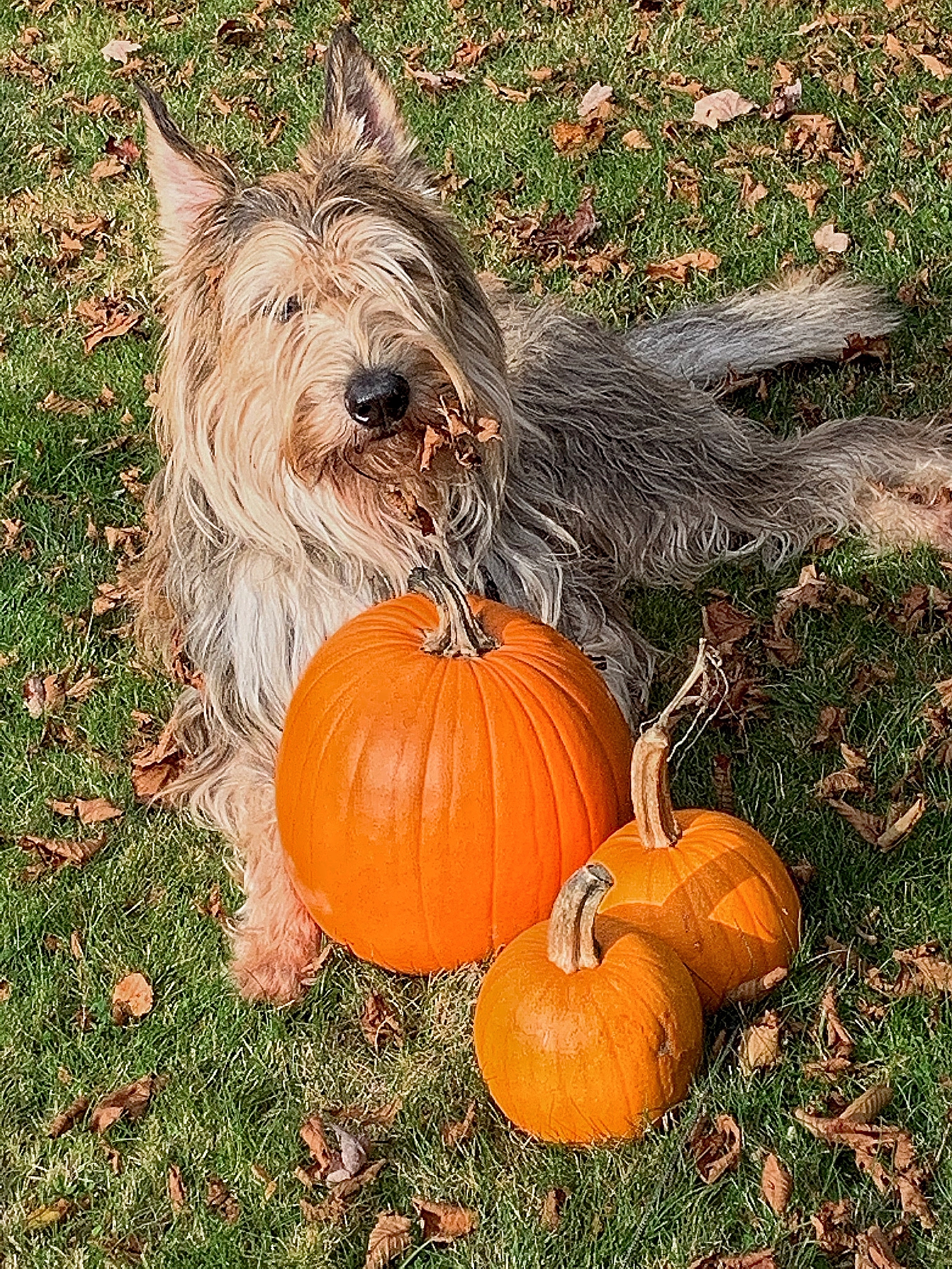 I must confess, we didn’t have to endure total humiliation by wearing a full costume. Just the dreaded headbands and some lights. And keep in mind – we get LOTS of treats during these exercises. The lights were not bad – and even the FG smirked a bit. The headbands? Well didn’t her highness think she was being clever by dressing us as jesters. Ha ha. Einstein and I cooperated a bit – but as soon as you put a headband on the FG, he looks like you took away his fetch toy.