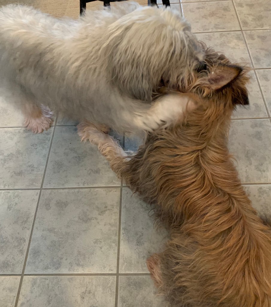 Now there are numerous artists who specialize in canine art. We have a few things like these acrylic paintings that are of us.