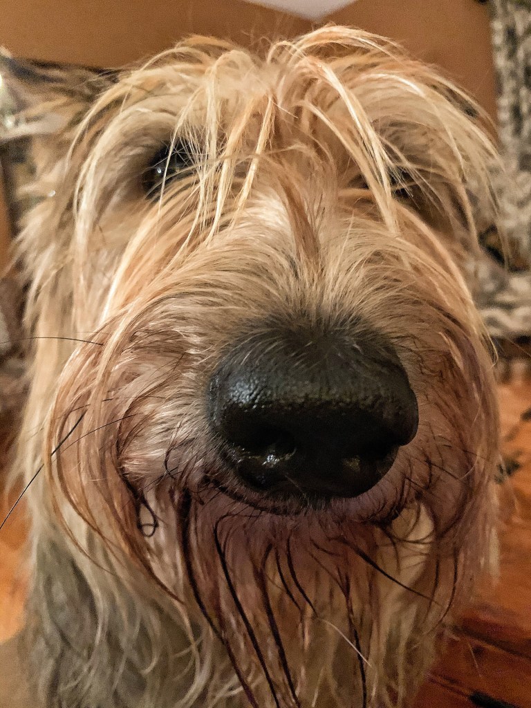 I am impressed with the fact that people PAY for this dog art. That is really what captured my attention. I think I could do it. However, realistically, her highness thinks I would be more like THIS dog. Note that this dog requires a treat for every brush stroke. Every single stroke. Her highness said my style would be closer to this…