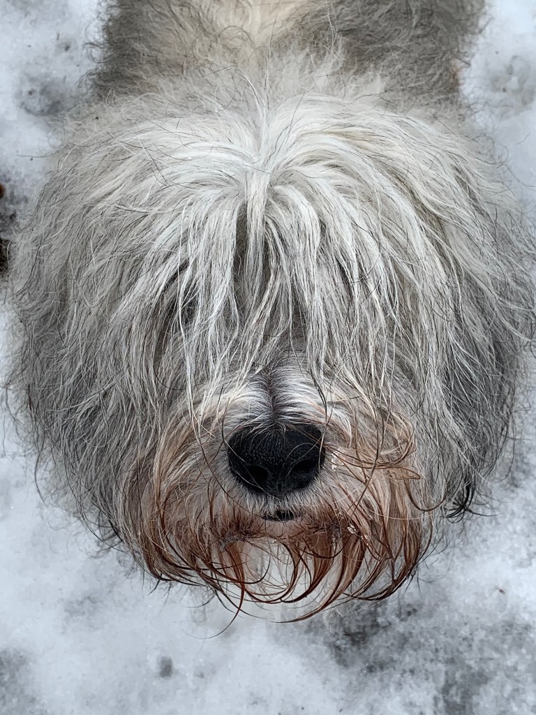 I spotted it, but her highness did too, so she steered me in the opposite direction. The beatnik was too busy sniffing the ground for canine greeting deposits. So we started up the trail but discovered it was icy. VERY icy. And her highness had not worn her boots with the cleats. So she announced that we had to go back. We trudged along and we were just about past the garbage can. Suddenly, the picky Picard, who spits out bananas and still occasionally stares at his food bowl as if waiting for it to miraculously turn into a sirloin steak, grabbed the pizza crust. Her highness yelled out the magic words “drop it!!!” but of course, the beatnik did no such thing . In an unbelievably swift move, her highness had his mouth open and she yanked out the pizza crust from the back of his throat before he even knew what happened. She ceremoniously tossed the soggy remnant in the garbage, and wiped her hand in her attractive dog walking pants. I just watched the whole episode with fascination. He just stared in shock.