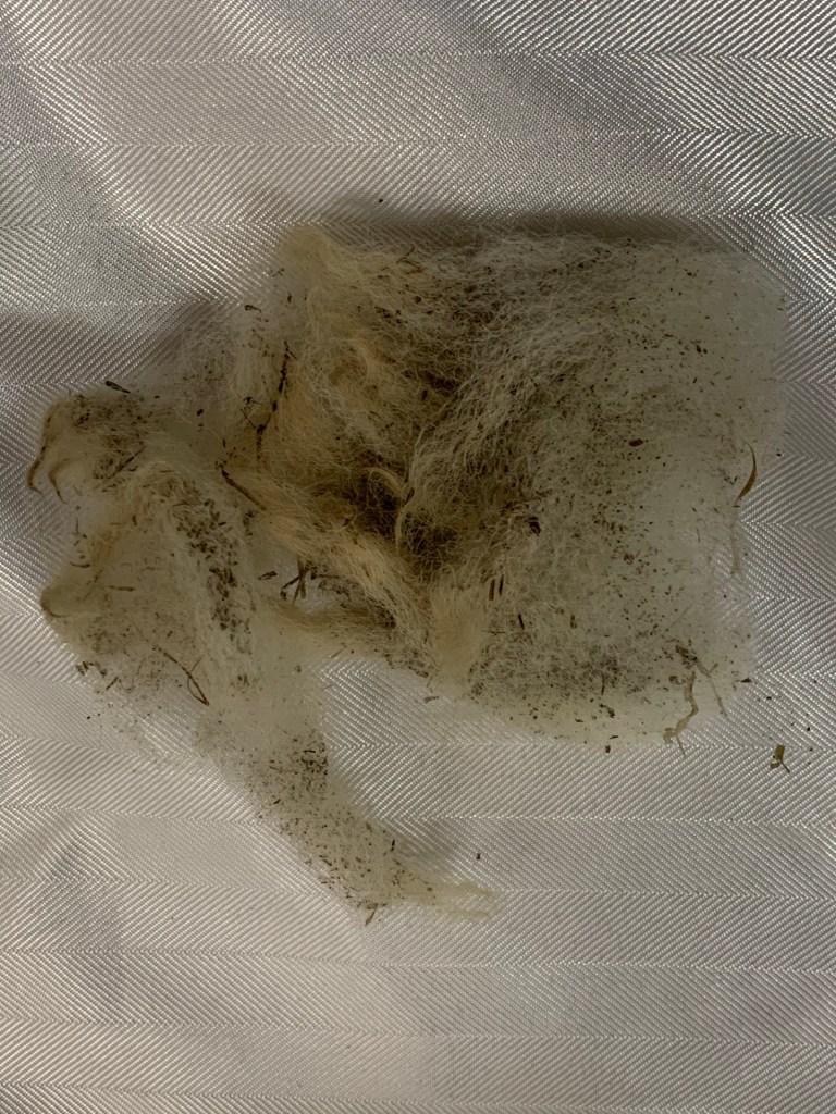 That’s what you get when you attempt to nibble a moving lambchop’s butt. A mouthful of fluff. So watch this video….it’s my true confession video. You see me doing not I TOO badly. Heather was able to let me loose. But you will also see a brief instant when a tuft of wool suddenly appears in the middle of the pen – seemingly out of nowhere. But if you watch REALLY closely, you’ll catch yours truly sampling the moving lambchop butt. Then you see Heather shout at me. After which I return to my pleasant herding persona.