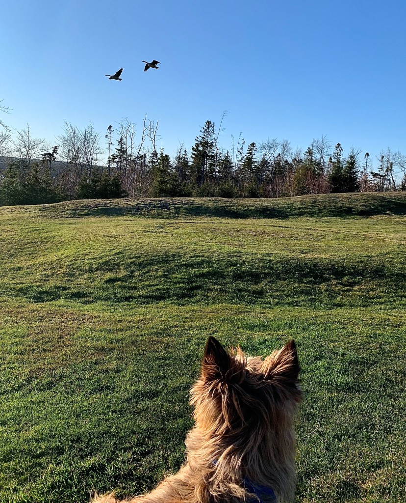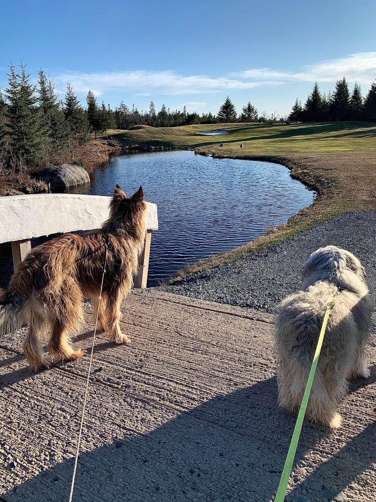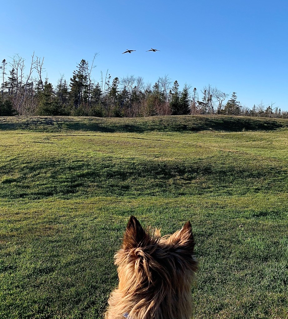 Now her highness didn’t need to worry about him taking off after the geese because he was on a leash. And she didn’t need to worry about me- because I’m well behaved. Or so she thought. I took off to say hello. However, I stopped to reconsider when I realized the size of them…