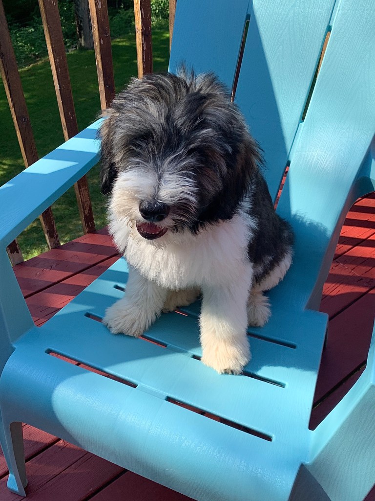 She also took a banana that was getting kinda mushy, she mashed it in a bowl and then scooped it into an ice cube tray. Of course the cubes weren’t cubes – they were in the shape of bones. As if we care! Then she stuck two frozen blueberries in each bone with the banana, and froze them. They were a hit after the sauna. Yeah – it’s nice to be a spoiled puppy.