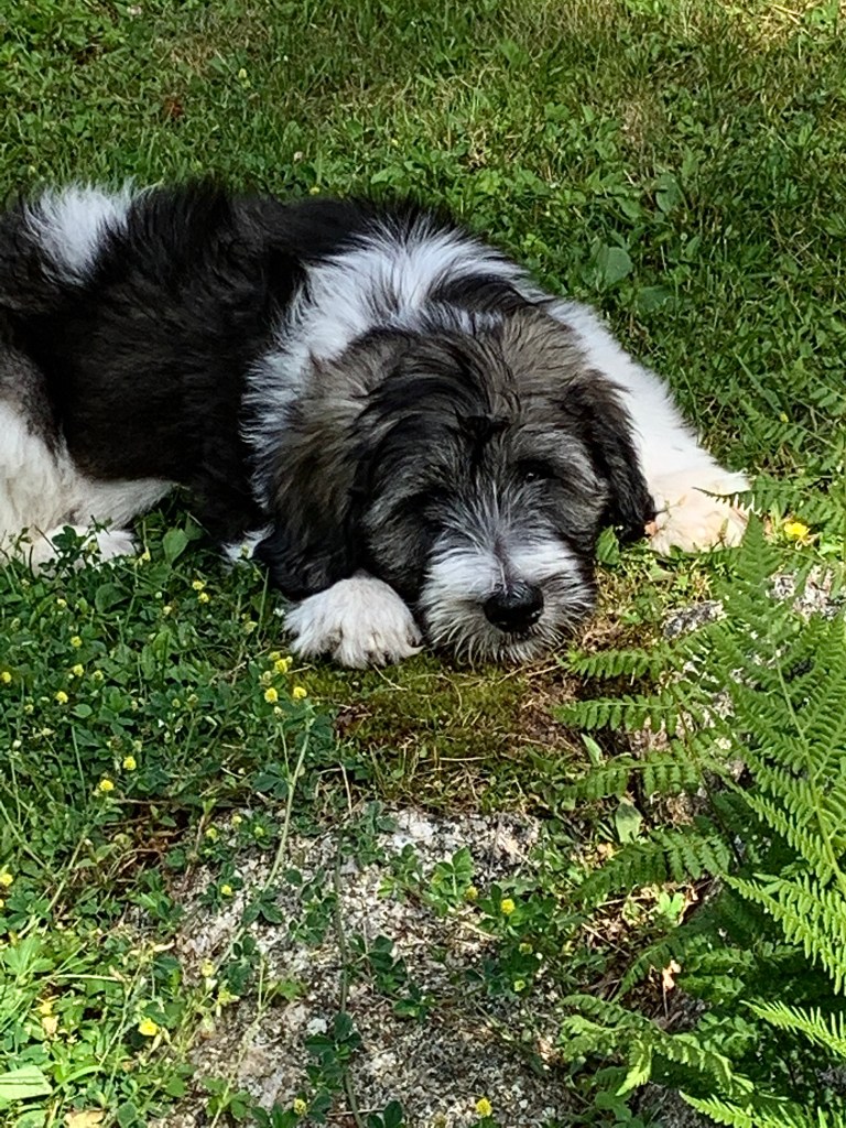 When her highness came in from outside, that’s also when she cursed the squeaky garage door. She THOUGHT she could MAYBE, sneak in and take a quick shower after her work outside. But the squeaky door gave her away and the Shaggy Shark siren went into full blown mode. She could have ignored him – but she also knows that after a two hour nap, he would need to pee. So she let the beast loose. Ah – fun and games!!