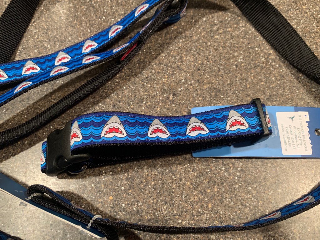 It was perfect timing because the Shaggy Shark is just about to outgrow his second collar. Even putting a collar on the Shark is not a simple task- wrestling with sharp teeth is not easy. But Her Highness did manage to somehow get it on him. Now to get him to stay still long enough for a photo. And before the collar gets all muddy.