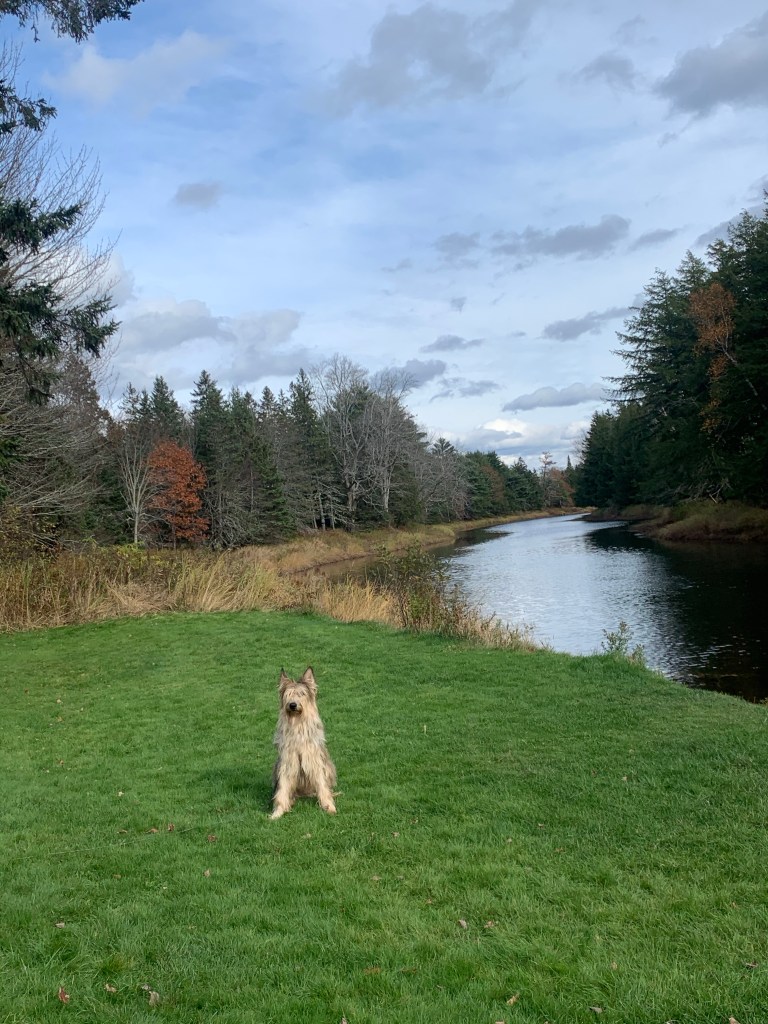 In news here, I went for my last massage therapy appointment yesterday. Liz, the therapist, poked and probed and massaged all my muscles. And she gave me a completely clean bill of health. She could find no evidence of my muscle injury. I’m completely healed up. I can continue to play with the Shaggy Shark and I’m good to go when herding begins again. Liz was so nice – she gave me my very own special Halloween treat – a big biscuit in the shape of a leaf covered in orange icing!! How nice was that. And in typical Picard fashion, I tossed it in the air and stared at it when it hit the ground. Her Highness had to embarrassingly explain that I can be a picky eater. Ain’t that the truth. So we brought my lovely bakery creation home.