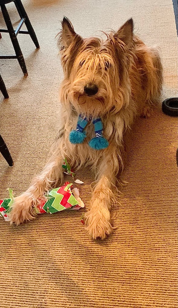 Yo. Readers. Elroy here. Enjoying the last few days of 2020. I hear it was a challenging year for lots of two leggeds – but honestly, from this dog’s point of view, it wasn’t all that bad. Her Highness was home with us lots of the time – so who can complain about that? Unless she wants to take photos with us canines wearing headgear. That I could do without.