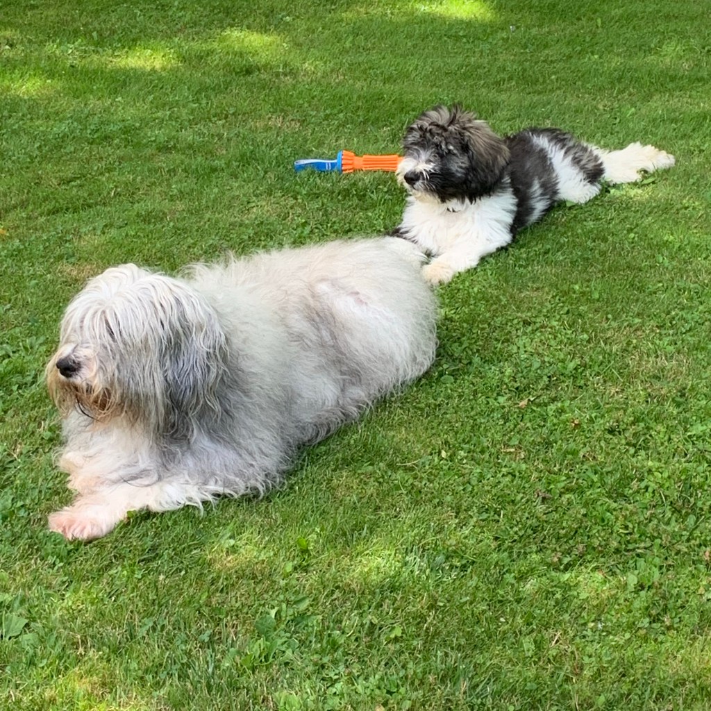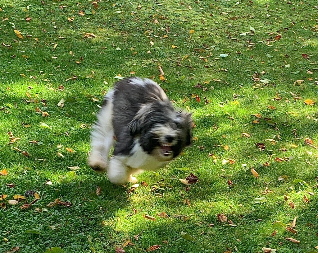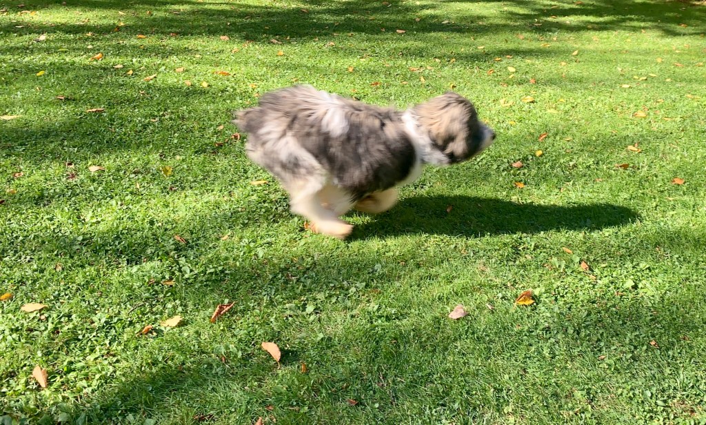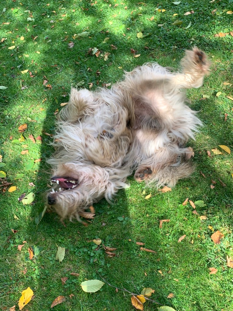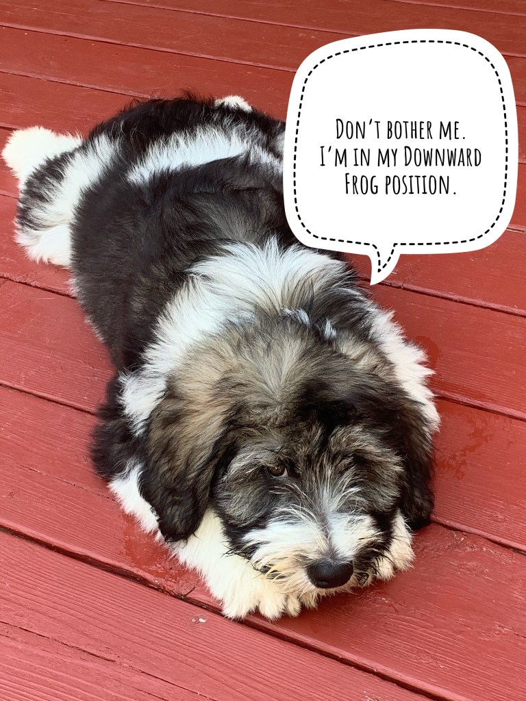 Sploot is when we dogs relax so much that we have our bellies on the floor – but our feet in the back go behind us. Puppies often do it. And I do it a lot. Here’s me splooting as a little puppy.
