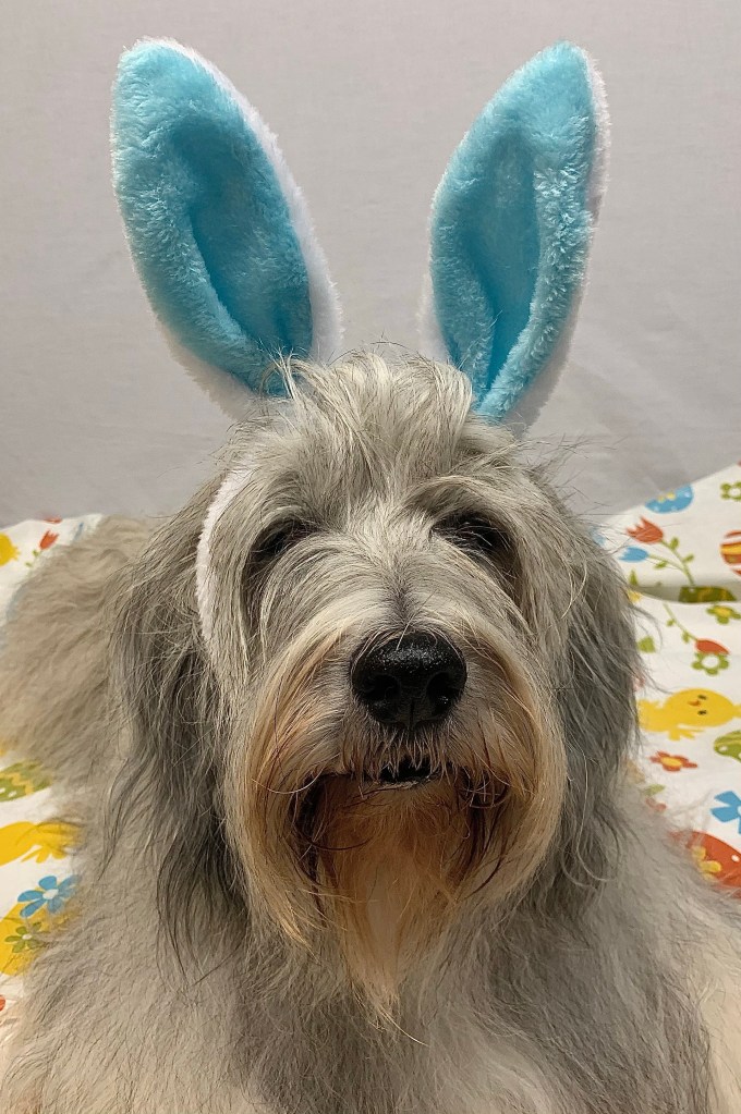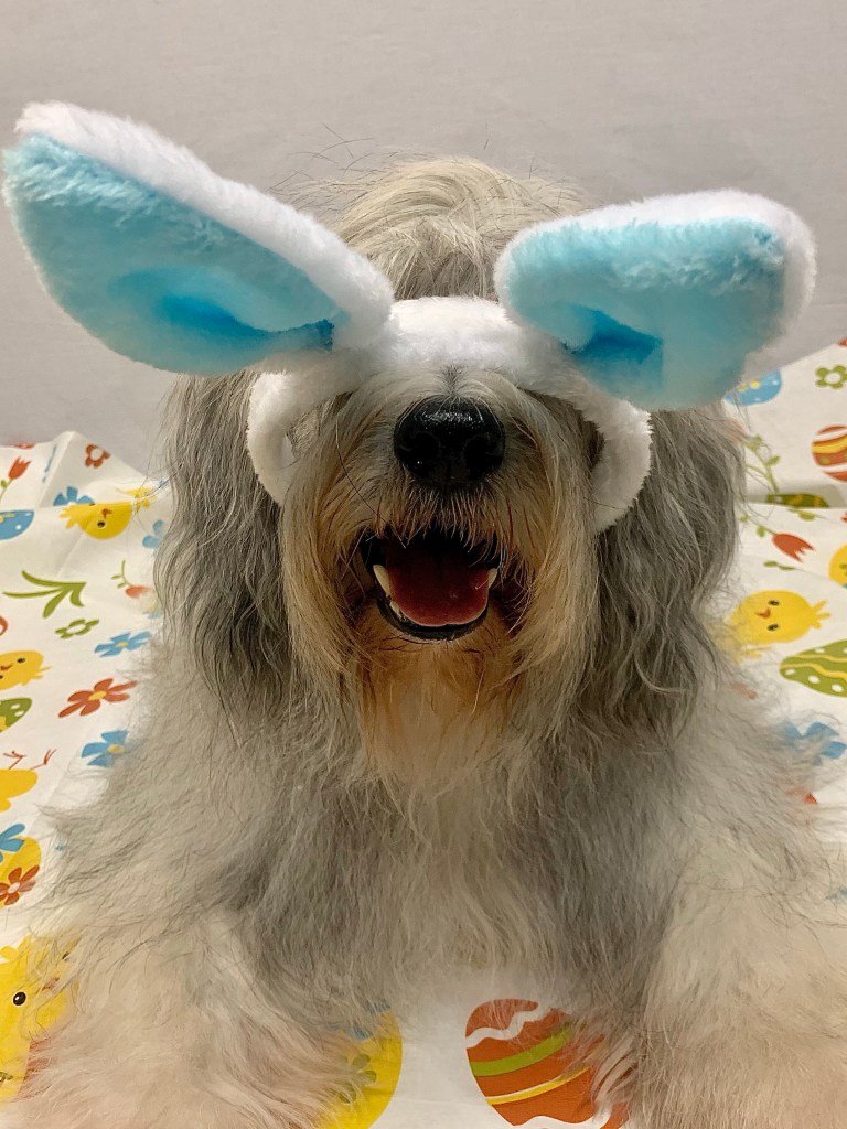 Howdy blogaroos. Squirmy Wormy here. I’m excited to let you know that we all survived our bunny ears photo shoots. And oooooo-eeeeee- My Enforcer pulled out the GOOD stuff for these shots. Cheese. I don’t REALLY care what the treats are, but cheese does make me sit and stay a nanosecond longer. And the Coyote likes cheese – so he’ll sit and look slightly less miserable. Plus he doesn’t spit out cheese. Seriously- during these photo things if he isn’t happy (which is usually the case) he’ll spit out biscuits. And then I get to search for them.