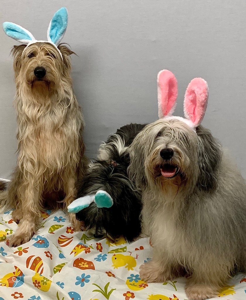 The top photo was our best group shot. Although after it was all over and My Enforcer looked at the photos – she noted that The Boss and I don’t even look like we had baths the other day. But what did she expect- it’s been raining pretty much non-stop for the last day or two – and she’s just lucky some of the mud had come off our paws before this shoot.
