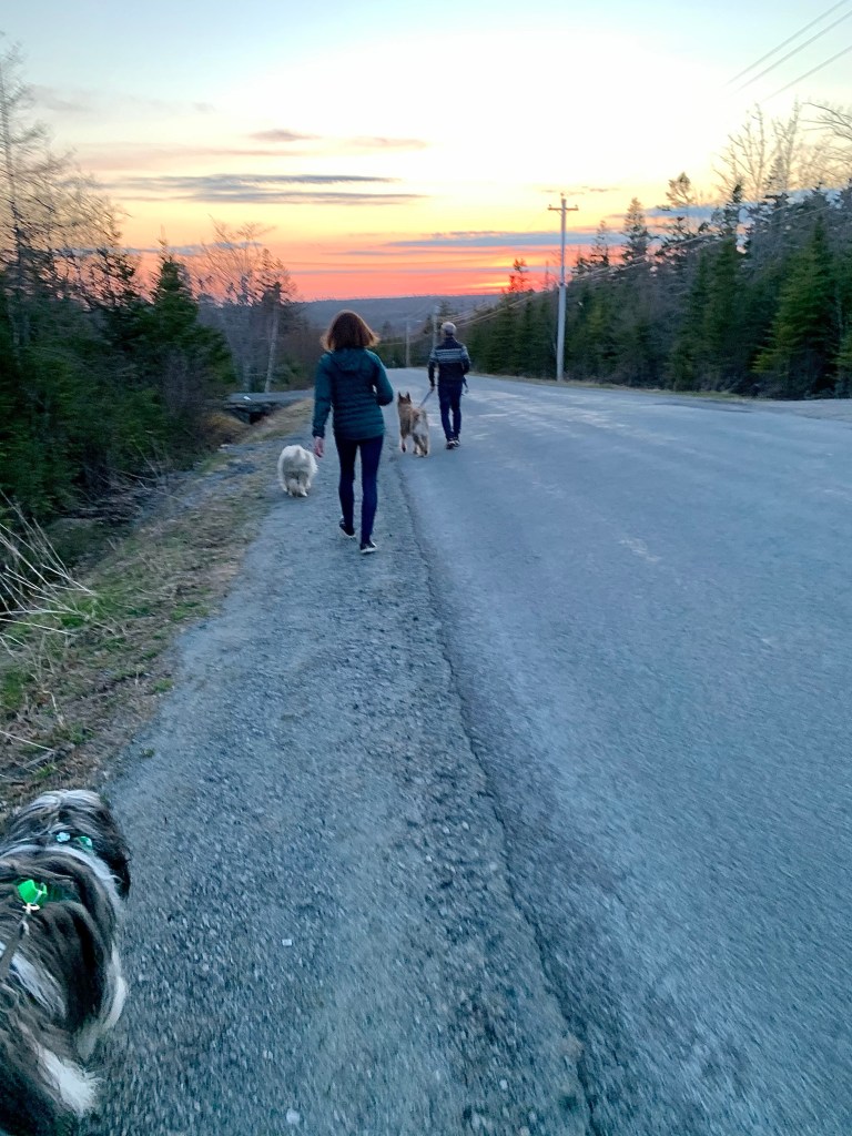 All three of us canines actually went for a walk the other night – because we have three humans. I actually got to do some running – and didn’t pull my charge into the ditch. How cool was that?!