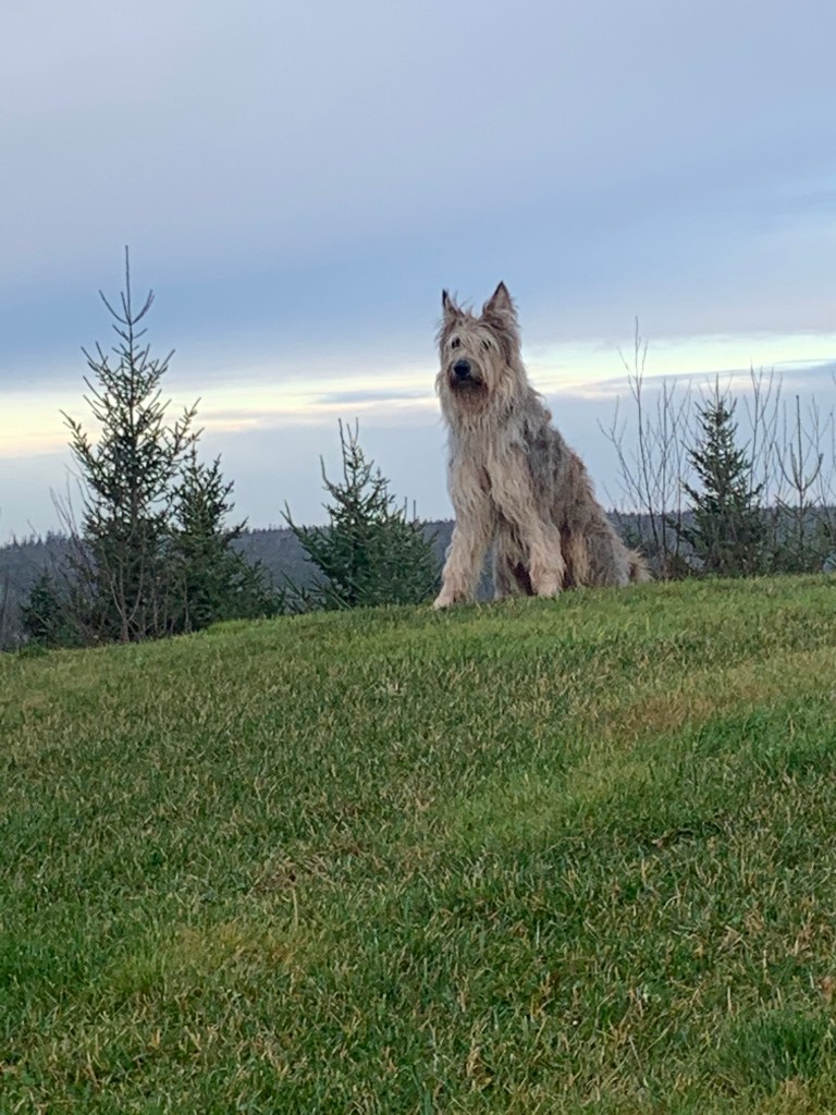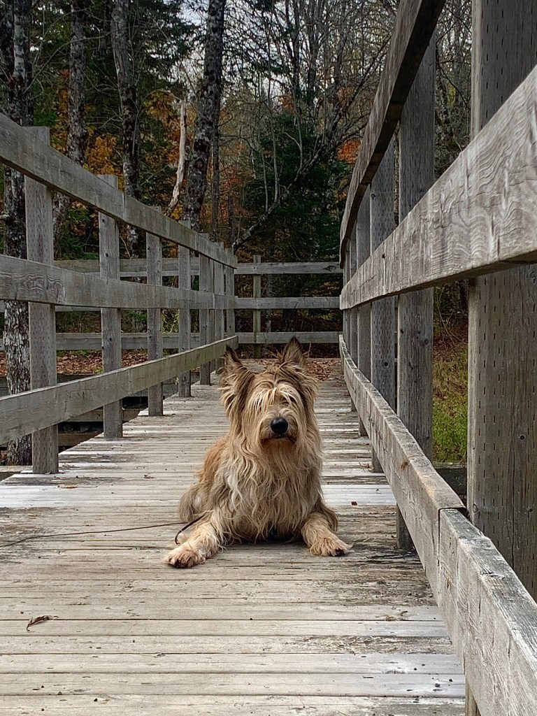 So the other day, the Boss and I were walking on the public trail early in the morning. It was pretty quiet, except for the birds. We were both on leash, because early morning can equal critters. And sure enough- we were trotting along, tangling up our leashes, leaving lots of pee mail, sniffing for things to roll in – when suddenly we saw something on the trail ahead of us. But it was so quick – we don’t know what it was! For sure it wasn’t a rabbit. Or a pheasant. Or a deer, porcupine, squirrel or bear. It looked kinda like a fox, but we haven’t had foxes here for quite a few years. It could have been a coyote. But it seemed kinda small. Anyway, we saw him- but surprisingly didn’t go bat poop crazy. We just pulled to see where he went – but no insane barking which we have been know to do. On occasion. My Enforcer took us a little further on the trail , but then she kinda freaked out because she didn’t know what it was – so she turned us around and headed back home. Personally I think she had nothing to fear with us PONs- we would protect her from anything. Or at least we would take off and run for help. Suuuuure we would….