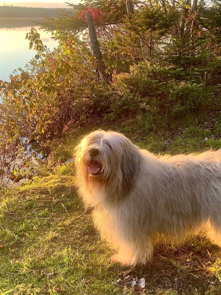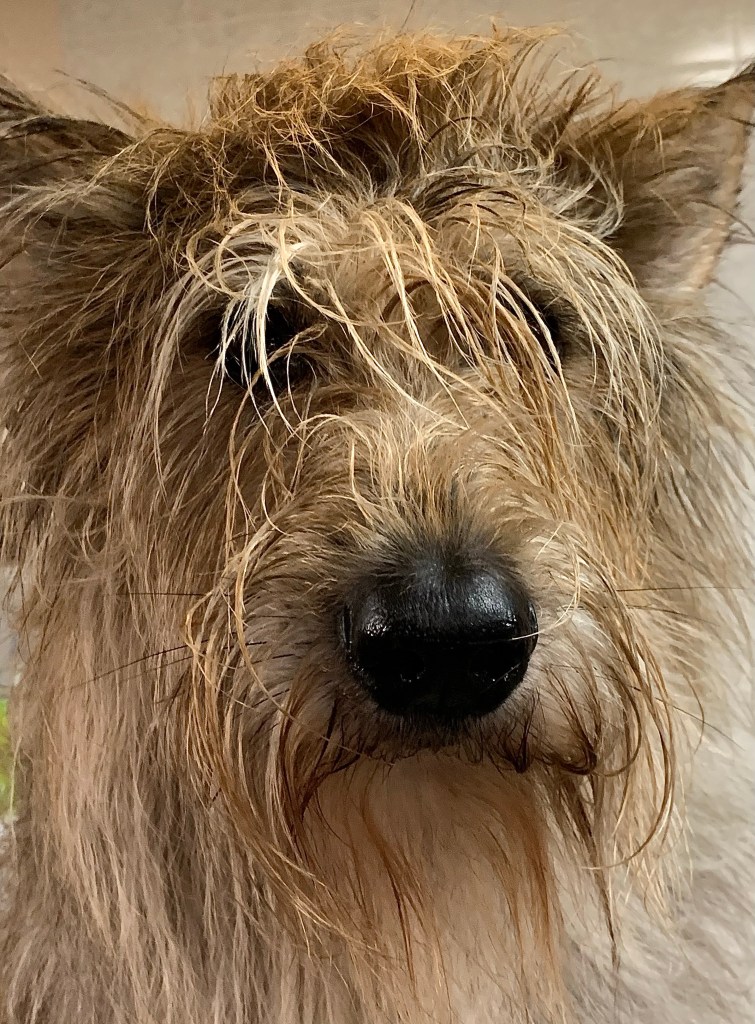 After My Enforcer finished breakfast, she announced that since it was a crappy day, it was PERFECT for grooming. And guess who her first subject was? Yup – yours truly. I’m just over 13 months and holy biscuit – my coat is wild lately. I must be getting a big boy coat or something, because all you need to do is look at me, and I mat! And it’s not like I didn’t just have a good brushing on the weekend!!! So we went into the grooming palace aka garage and My Enforcer turned on a fan and opened the garage door – to keep us both cool. It took just over an hour to smooth me out.