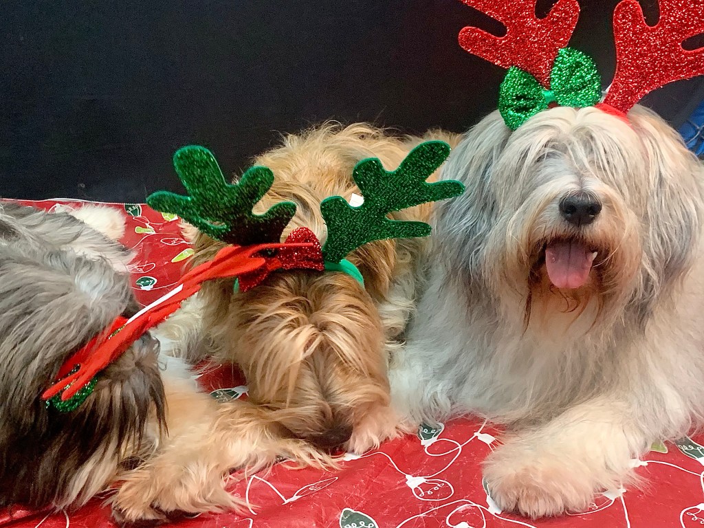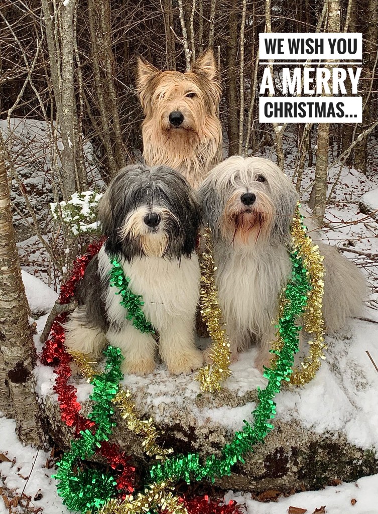 Now if you’ve been a regular blog reader, you know that besides the gazillion shots she takes on any ordinary day, the most “fun” shots are what we call the “holiday trio” shots. That’s when she brings out the crappy Dollar Store attire, the SUPER good treats, and usually takes us into the “studio” aka garage for a session. As usual, the Coyote is always the least enthused. And the Boss sits like a stuffed animal. And you get to see the best of 467 shots taken. So let’s look at the best holiday trio photos this past year. Along with the photos that did not make the cut. Some of these bloopers you may have seen. And others (I think) are being revealed for the first time. Enjoy!