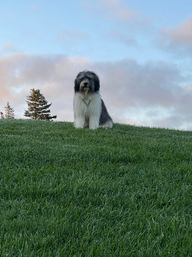 You all know about our ongoing carpet battles. The last one was put down … sometime during the height of COVID. And I started to add my own decorating flair to it by giving it a rustic, worn look- by chewing the edges and pulling out random strands. Then the Warden sprayed it with that toxic horse spray stuff and I left the carpet alone. Still – it was looking kinda grotty – so the Warden had bought a new “spare” carpet which was wrapped up and stored in the garage. So since we were getting company, she decided on Tuesday night to roll up the old carpet, and drive it up to the road because garbage day is Wednesday. She sequestered us in the front hall while she moved around the dining room chairs and our rather large dining room table. All with much moaning and groaning. She battled with the carpet, tied it up and dragged it to the car. She drove it to the road (in the rain) and deposited it for pick up. She drove home, dragged the new carpet into the dining room (while we were again sequestered) and moved back the chairs and the table. Now the corners of the carpets were standing up a bit as the carpet had been rolled up for so long, so she put chairs on each corner. And then it was time for bed….