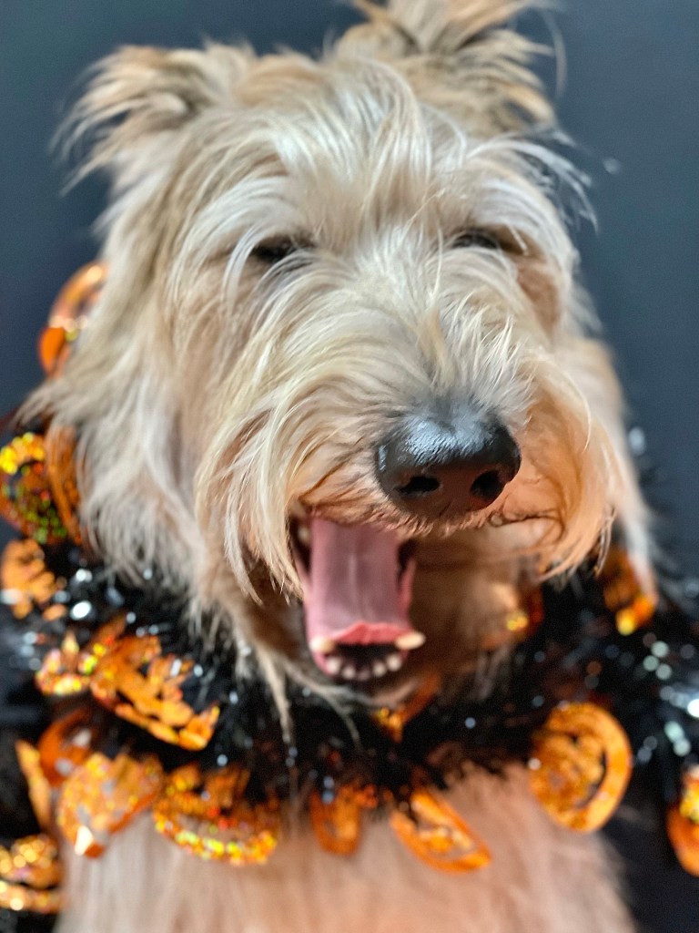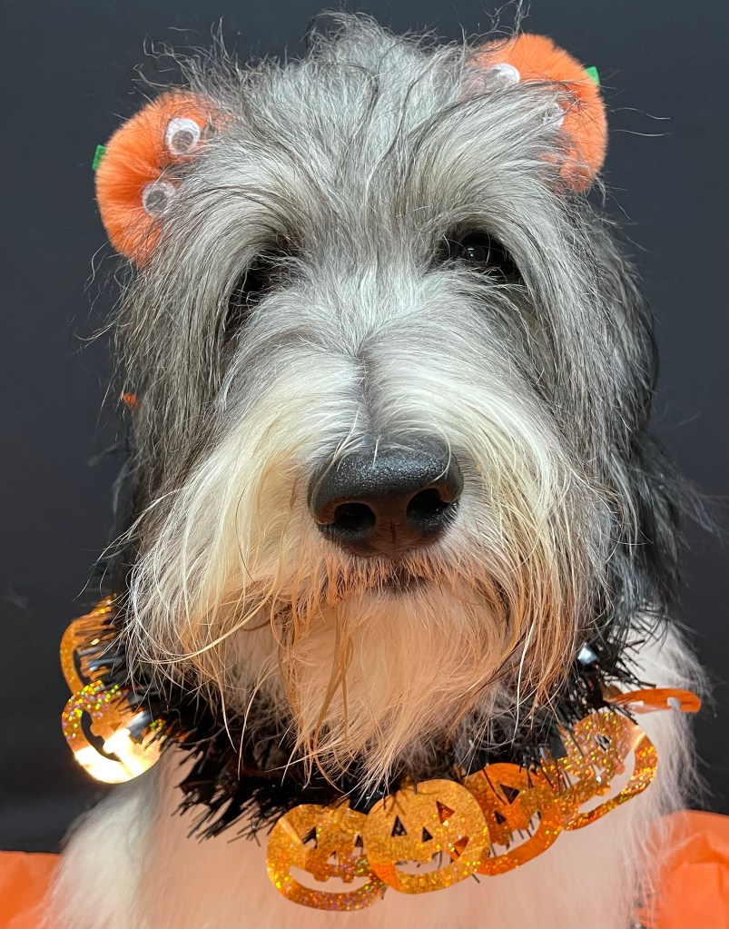 This is just my second year experiencing the whole Halloween dress up phenomenon. Well. We don’t really wear full costumes. The Warden knows she can only push the dress up thing so much. So it’s generally limited to some neck wear and the dreaded head gear. She starts taking photos in like August. Just joking. Sort of. Anyway, she starts with individual shots and some of the best results of those are seen above.