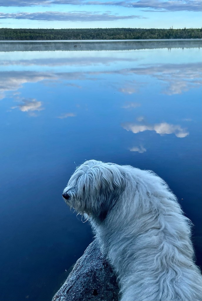 Meanwhile, yesterday we all took a little walk to the lake- and Her Highness encouraged the FG to go for his first swim of the season. That lad is….something else. But just what he is, I don’t know. She showed him a stick and threw it into the water. He jumped in – and although the stick was right in front of him, he couldn’t find it. She reeled him back in, as he was on a line. Meanwhile, the Imp was going MAD. He has never seen the FG swim- and he didn’t know what to do. He wanted to go in. He didn’t want to go in. He ran along the shoreline watching. He put a foot in. He jumped back. Her Highness threw another stick for the FG – which he watched, and yet again could not find. I believe he was looking for the bumper she usually throws in. He could not grasp the stick concept – despite the fact that he is known to carry sticks he finds on the trail. Her Highness reeled him back in. This time she held him- shook the stick in front of him, tossed it making sure he saw it and let him go. And go he did – pulling her face first into the water and onto her knees. Thankfully, she landed in a rather precarious pose with her derrière out of the water. The pose was lucky because her phone was in her back pocket. She tossed it onto the shore and got herself up – her rubber boots full of water. I just watched with mild delight. And the FG retrieved the stick. Finally. The Imp still could not be convinced to go in. Perhaps today. But you can definitely count yours truly out. No. Thank. You.
