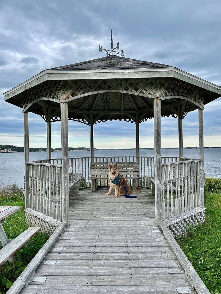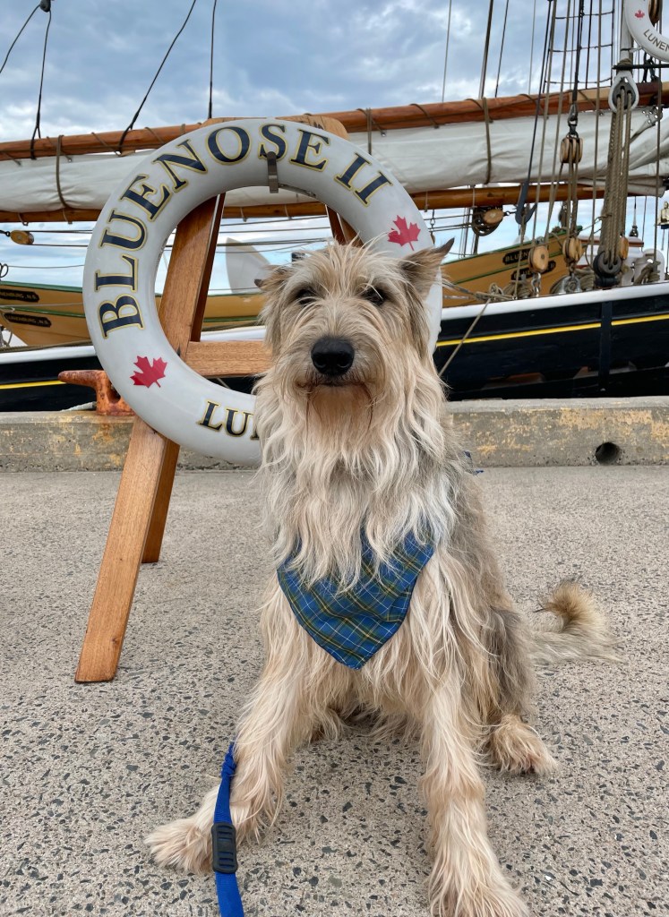 Anyway, it was an afternoon of festivities including music and a BBQ. So guess who got to go. Yours truly because I’m the ambassador dog in the family. Yup. Slap a Nova Scotian tartan bandanna on me – and I’ll let anybody pet me. Seriously. The dog who has had no obedience classes can march through a crowd like I own the place. I’m calm. I’m cool. I’m sociable. Pretty much the antithesis of the mops. I even posed for some photos. Yawn.