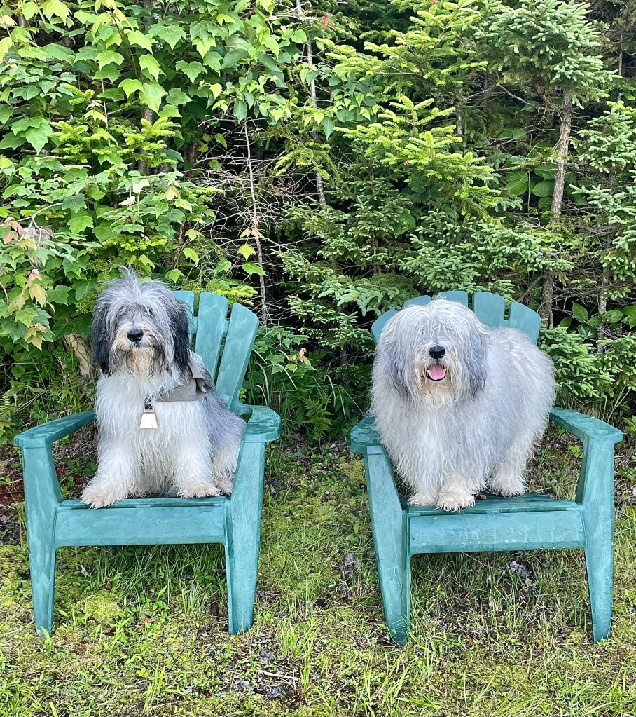 And speaking of makeovers, yesterday was torture day for two members of our household. Because one needed the makeover – and the other did it. Who am I talking about? The Boss and the Warden. Now we all know how the Boss hates being groomed. And frankly, the Warden hates grooming him. It’s a literal wrestling match. And although she never lets it go for more than 1-2 weeks max, with the warmer weather lately she somehow let it go for 3 weeks. Oh he had a cursory brushing in that time, but not the complete once over where every inch of skin is examined and every little tiny gnarly in every private area imaginable, is brushed out. You cannot even BEGIN to understand how torturous the process is for both of them. First she lifts him onto the grooming table. No wait. FIRST she has to go and catch him. If she makes the mistake of saying “ you need a brushing” he is GONE. We’re talking out the screen door and down the deck stairs. Calling him is futile. The Warden has to go and get a leash, capture him, and lead him back to the house. Once he’s on the grooming table, she gently flips the knotted wooly lump onto his side. She has the pockets of her grooming apron FILLED with kibble. And the wrestling match begins. She brushes a bit, and he tries to roll into a sphinx position. She has to push him back on his side. She brushes and as soon as she stops to take hair out of the brush, he rolls back into the sphinx position and he expects a treat. She has to push him back onto his side. Actually, he wants a treat for every area brushed. I counted. Because I was watching. It was like 359 treats. Give or take a hundred. And heaven forbid you have to brush a sensitive area. Like his feet. He screams. The Warden had a fan going, and thought about opening the garage door – but it was only 8:30 in the morning and she figured people within a 5 km radius would think a murder was occurring. Now he doesn’t cry ALL the time. Just like 25% of the time. And when he’s not crying, he’s panting. He tries to turn over. She moves him back into position and gives him a treat. After almost 2 hours yesterday, they were both panting. But the funny thing is- he’s moaning and panting and as soon as they are done he pops up and is completely fine. I must make a confession here….part of the reason he was doubly gnarly was because yours truly loves to do makeovers on him. I lick his face, the top of his head, his ears, his neck….So I guess I’m partly to blame for his sad state. But not that I’ll stop trying my makeovers – I just haven’t perfected my craft yet. Don’t worry – I’ll keep working on it….